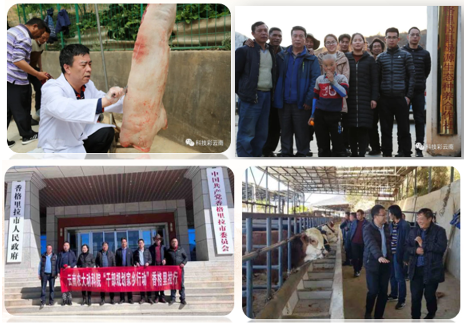 学院党委积极部署干部规划家乡活动,党委委员项勋组建牦牛产业团队,制定了《香格里拉市牦牛产业发展规划(2021-2025)》,为香格里拉市特色牦牛产业发展提供了智力支持。严达伟教授组建藏香猪技术团队,带动农户147户,实现了产业增效、农民增收,受到迪庆州委、州政府的高度赞誉,其典型扶贫事迹被学习强国、云岭先锋等主流媒体宣传报道。