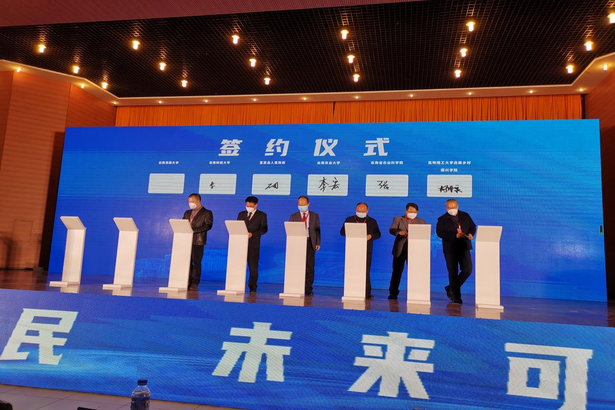会议聘请了49名专家学者、企业家为富民产业顾问、产业导师及招商大使,签约各类合作项目53项,协议总投资金额达213.54亿元人民币。李宏副校长代表学校与富民县签订校地合作框架协议,食品科学技术学院和劲松教授受聘为富民县产业导师。
