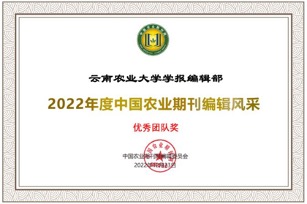 饮水思源,感恩奋进。诸多荣誉的获得离不开各位编委、专家、作者和读者的共同努力和鼎力支持!你我点点星光,汇聚璀璨星河。在此,衷心感谢所有专家的辛勤付出和无私奉献!未来,《云南农业大学学报》编辑部将继续深入学习贯彻党的二十大精神,聚焦国家科教兴国战略和乡村振兴战略,做好选题策划,追踪学科发展前沿,充分发挥《云南农业大学学报》在学术交流中的桥梁纽带作用,继续发扬爱岗敬业、开拓创新、锐意进取的职业精神,继续秉承创新发展、融合发展、引领学术创新、促进学术交流的发展理念,不断提升办刊水平和学术影响力,共同促进我国现代农业科技事业的进步。