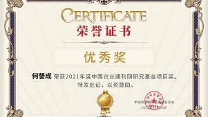 会上,中国农业期刊网公布了2022年度中国农业期刊行业优秀团队等10类奖项评奖结果,并发布了2021年度中国农业期刊网研究基金项目的评优表彰结果。《云南农业大学学报》在本次评优中共获得7项荣誉,其中,学报编辑部团队荣获“编辑风采奖”称号,自然科学编辑室荣获“优秀团队”称号,常务副主编汪善荣荣获“优秀主编”称号,何承刚同志荣获“杰出人才”称号,我校植物保护学院姬广海教授团队发表在《云南农业大学学报(自然科学)》2020年第5期的论文《玉米大豆间作模式对玉米根际土壤微生物群落特征、玉米产量及病害的影响》荣获“优秀论文”称号,我校资源与环境学院湛方栋教授荣获“优秀审稿专家”称号,编辑部何謦成荣获2021年度中国农业期刊网基金项目优秀奖。