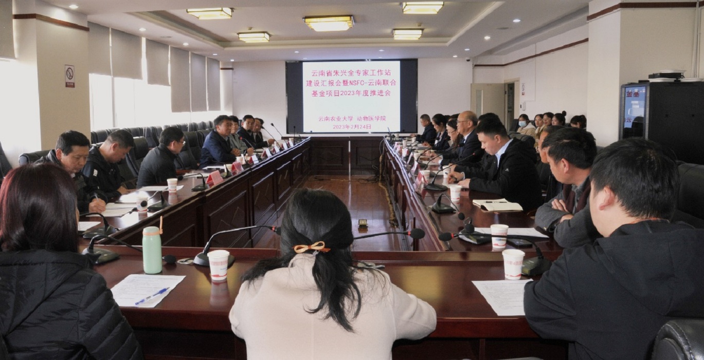 本站消息 2023年2月24日,云南省朱兴全专家工作站建设暨NSFC-云南联合基金重点项目推进会在我校召开。副校长魏红江到会指导并提工作要求,中国科学院昆明动物所,河南农业大学动物医学院,云南省畜牧兽医科学院,云南精诚生物科技有限公司,校科技处相关负责人、专家、教授参会指导。山西农业大学动物医学学院朱兴全教授团队成员、我校动物医学院有关老师和研究生参加会议。会议由动物医学院副院长白忠彬主持。