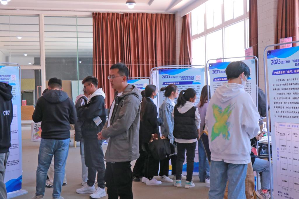 本站消息 2023年2月28日下午,浙江长兴“万岗纳才百校联招”云南农业大学专场招聘会在学校众创空间路演大厅举行,共有22家企业到校招聘,现场提供外语、机械工程、化学、经济管理等各类岗位200余个,拟招聘2000余人,各学院2023届毕业生积极到场应聘。