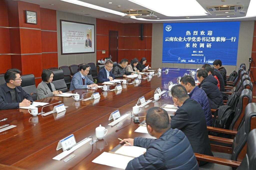 2月28日,黎素梅一行抵达浙江农林大学。座谈会上,浙江农林大学党委副书记冯尚申、副校长徐爱俊、组织部部长缪鲁加分别介绍了学校总体情况、学科专业建设情况、党建与干部队伍建设情况等,双方有关部门和学院点对点进行了深入交流。浙江农林大学原党委副书记方伟,校办、规划处、教务处、农学院、动科动医学院、光机电学院、食健学院等负责人到会。