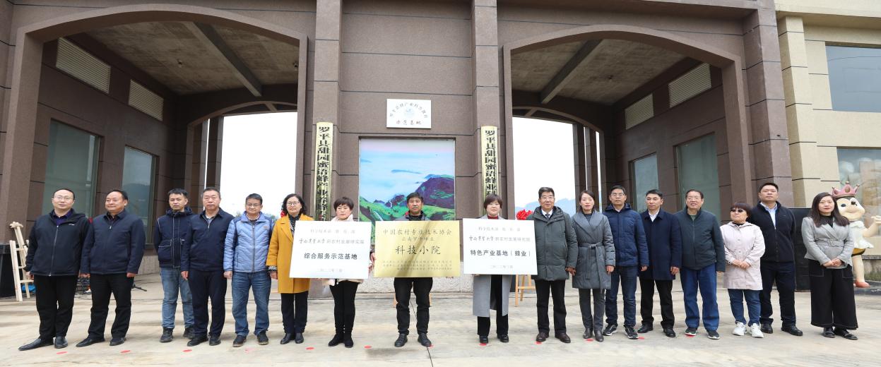 罗平县人民政府副县长朱江在致辞中表示,罗平县将以这次揭牌仪式暨乡村振兴大讲堂为契机,依托科技小院大力弘扬科学精神,普及科学知识,以科技力量助力乡村振兴。何文代表曲靖市科协在讲话中强调持续依托科技小院平台,聚才引智,推动创新链产业链人才链深度融合,促进政产研学企深度合作,推动技术成果转化落地和发展推广运用。罗平蜂业科技小院首席专家杜发春研究员宣读了中国农技协《关于同意设立“中国农技协云南罗平蜂业科技小院”的批复》。省、市、县相关领导分别为“中国农技协云南罗平蜂业科技小院”“新农村发展研究院特色产业基地”“新农村发展研究院综合服务示范基地”揭牌,标志着曲靖市首个科技小院在罗平正式成立。