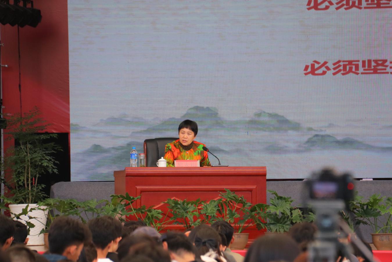 她强调,党的二十大报告统揽全局、重点突出、论述精辟、思想深刻,为党和国家事业的发展指明了方向,全体师生要深刻领会和把握党的二十大精神实质和丰富内涵,切实把思想和行动统一到党的二十大精神上来,以饱满的热情和强烈的使命感,将党的二十大精神内化于心、外化于行,汇聚起奋进新征程、奋斗新时代的强大青春力量。