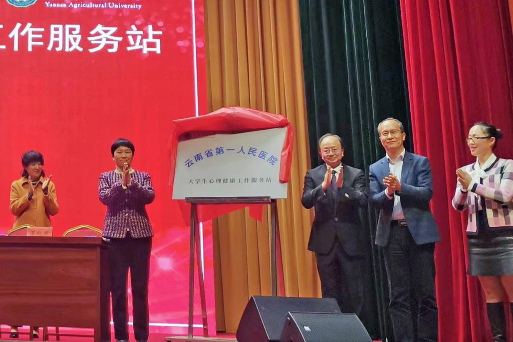本站消息 2023年3月24日下午,学校与云南省第一人民医院合作签约暨揭牌仪式在校友会堂举行。校党委书记黎素梅与云南省第一人民医院党委书记李伟分别致辞,并为“云南省第一人民医院大学生心理健康工作服务站”揭牌。副校长李宏与云南省第一人民医院临床心理科主任钟静玫分别代表双方签订合作协议。云南省第一人民医院临床心理科相关专家,学校心理健康领导小组成员,学生代表共计600余人参加仪式。仪式由校党委副书记徐华主持。