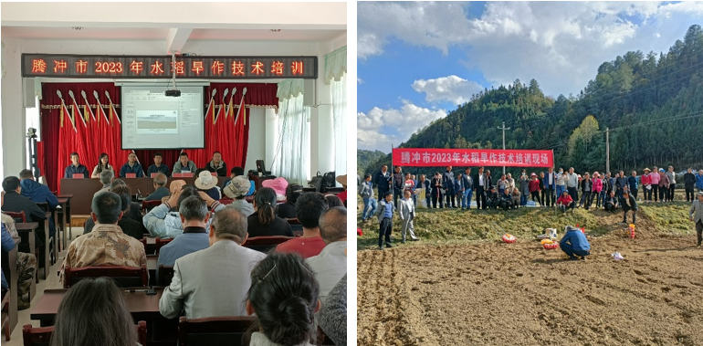 本站消息 2023年3月23日,腾冲市2023年水稻旱作技能培训在曲石镇开班,朱有勇院士水稻旱作技术团队到现场指导培训,来自市农业中心、各乡镇(街道)农业综合服务中心技术人员、村委会干部和水稻种植户大户共70余人参加。