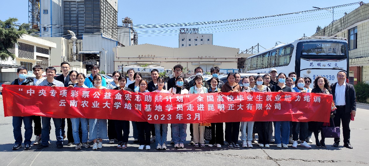 本站消息 2023年3月30日,学校就业与创新创业指导服务中心组织“中央专项彩票公益金宏志助航计划-全国高校毕业生就业能力培训云南农业大学基地”学员走进用人单位,赴安宁市昆明正大有限公司开展招聘活动。学校“宏志助航计划”2023届毕业生及部分学院班主任、毕业生代表等40余人参加。