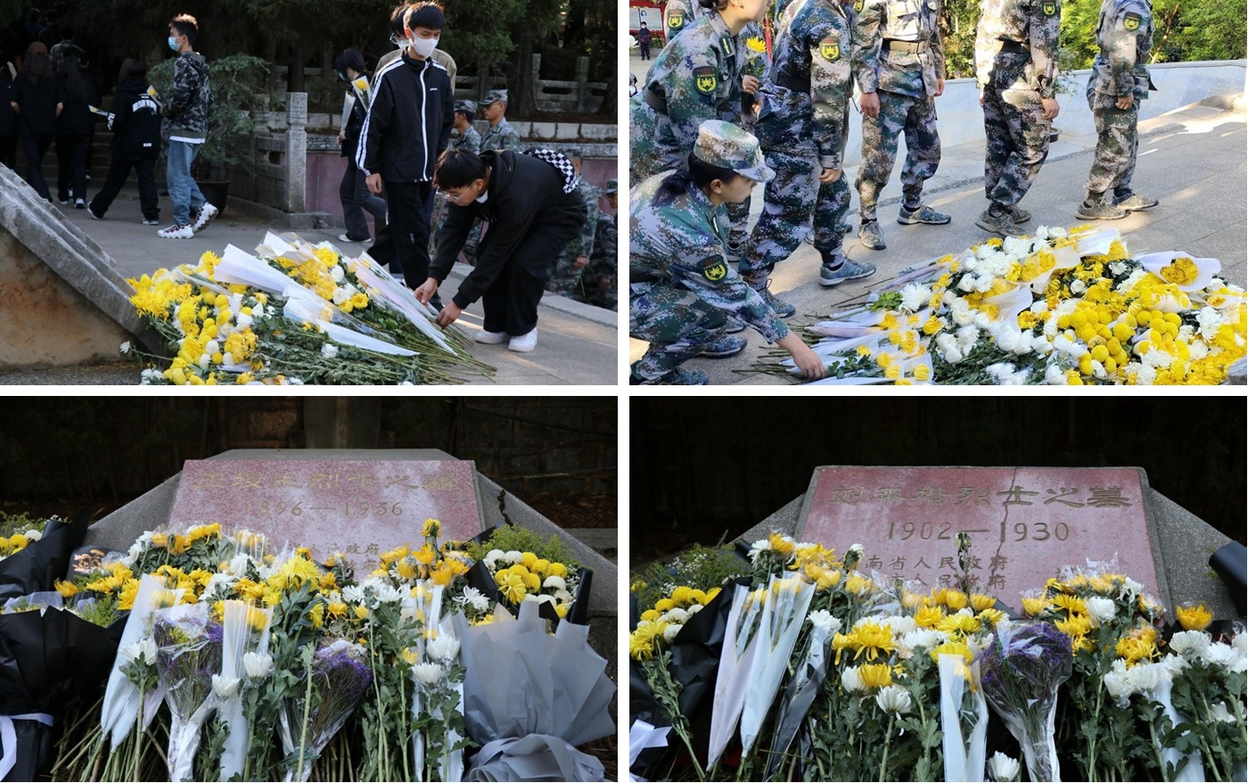 当天清晨,怀着对革命先烈们无比的敬意和无限的哀思,同学们在革命英烈墓前举行了隆重的悼念仪式,通过奏唱国歌、敬献花环、默哀、重温入党入团誓词等方式缅怀革命英烈,并通过宣讲的方式,同前来悼念的人们,一起重温了王德三同志从五华山前往刑场途中发出的时代强音:“中国共产党万岁”。回顾了吴澄同志在狱中对难友说的:“一个革命者要有牺牲自己的精神,才会敢于革命”。追忆了刘平楷同志在狱中执笔嘱咐妻子:“如果我死了,不要悲伤,也不要为我守节,为党的事业,为人民的解放而死,我心甘情愿”。期间,还宣讲了马登云、王复生、张舫等多位革命英烈英勇就义的历史。追忆革命英烈们的英勇事迹,回顾党的非凡历程,体会风霜雪雨,感悟红色精神,领悟红色智慧,树牢红色信念。
