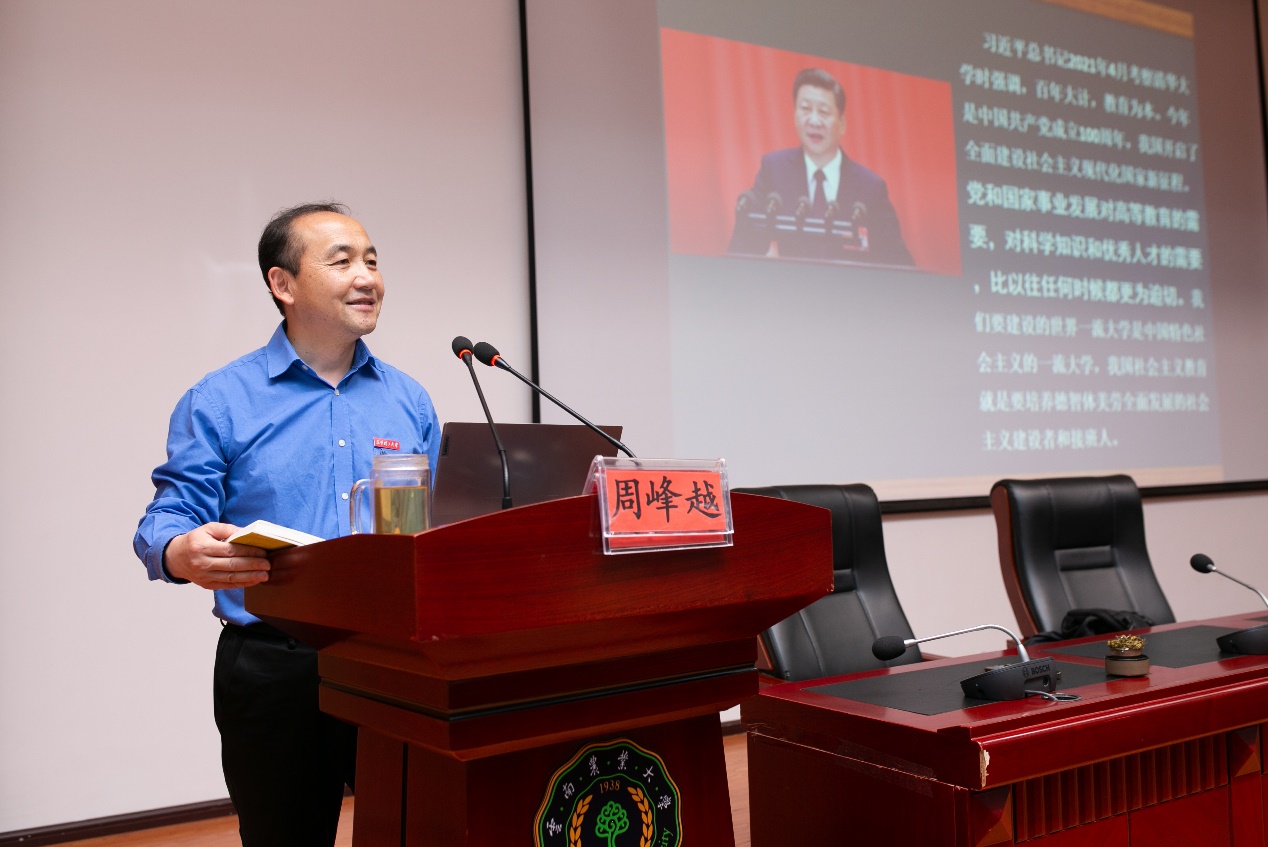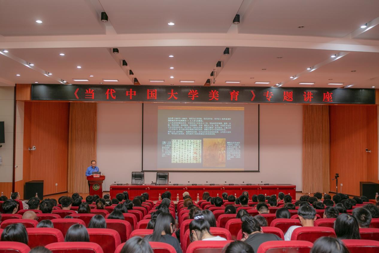本站消息 为全面加强和改进学校美育工作,进一步发挥美育在人文素质教育及创新型人才培养方面的重要作用,2023年4月12日晚,教务处邀请昆明理工大学周峰越教授在东校区耕读楼二楼报告厅为全校师生作《当代中国大学美育》专题讲座。专题讲座由杨生超副校长主持,宣传部、教务处、学生处、校团委主要负责人、各学院师生代表共计350余人参加了现场讲授,部分师生以网络直播的形式收看。