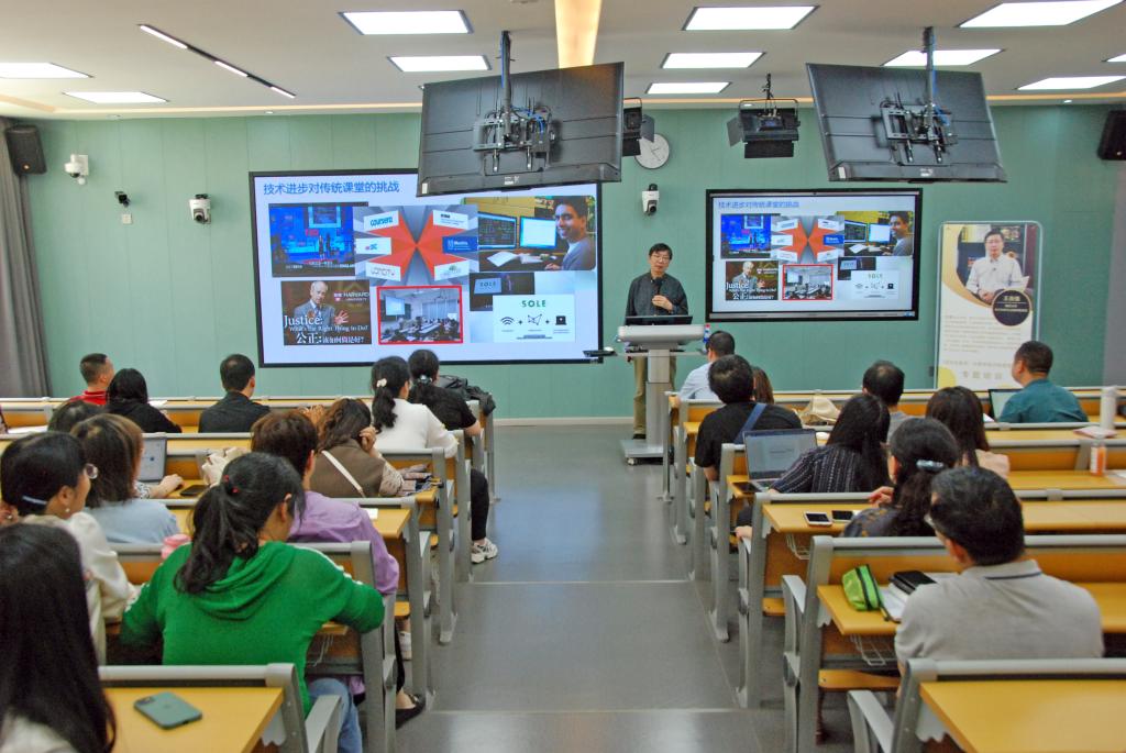 4月27日下午,南京大学王自强教授与郑伟娟教授分别为学校申报第三批国家级、省级一流课程进行专场培训。王自强教授从当前国内外课堂教学的现状入手,通过梳理教学历史,向我们传达了混合式教学如何从“传授范式”到“学习范式”、从“以教师为中心”到“以学生为中心”转变的理念,通过大量的实践案例生动展示了线上线下混合式教学基本流程及其效果;郑伟娟教授通过自己两门国家级一流课程的建设过程的介绍,展示了优秀课程的建设是需要提前做好准备的,“凡事预则立”是最好的注解。