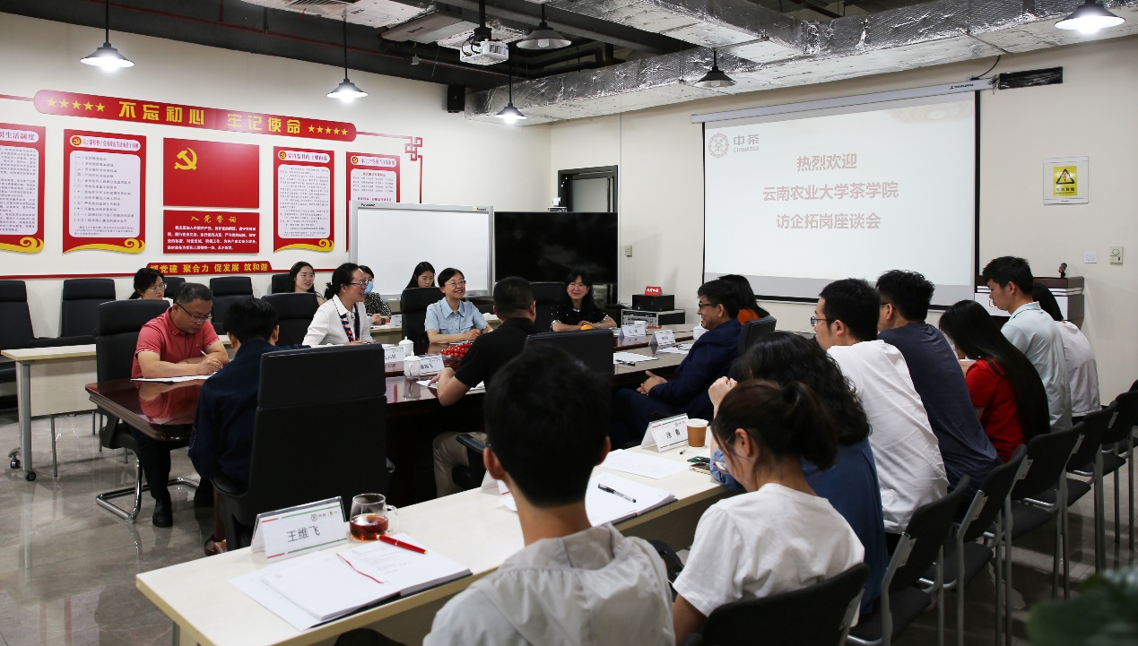座谈会上,张慧介绍了学校发展历程、基本情况和今年茶学院的毕业生情况,希望学院能够携手中茶,加强在人才培养、教学科研等方面的合作,促进毕业生高质量就业。茶学院院长王白娟希望能通过科研合作和人才联合培养,真正做到产学研一体化。中茶总经理盛玉泊介绍了公司整体发展经营情况,期待将来能与我校开展更多的校企合作。我校优秀校友、公司总经理助理及产品研发部总经理魏珍珍2010年毕业于学校茶学院茶学硕士专业,2019年获得“云南省五一劳动奖章”,2021年获得“云南省劳动模范”称号,工作期间取得了不错的成就,为师弟师妹们树立了良好的榜样。魏珍珍感谢母校和企业的培养,也希望未来能够更有所成以回馈母校。在中茶就业的茶学院毕业生一一进行了交流发言,感谢学校和企业提供的平台让他们快速成长,未来自己也要终身学习,实现自我价值。