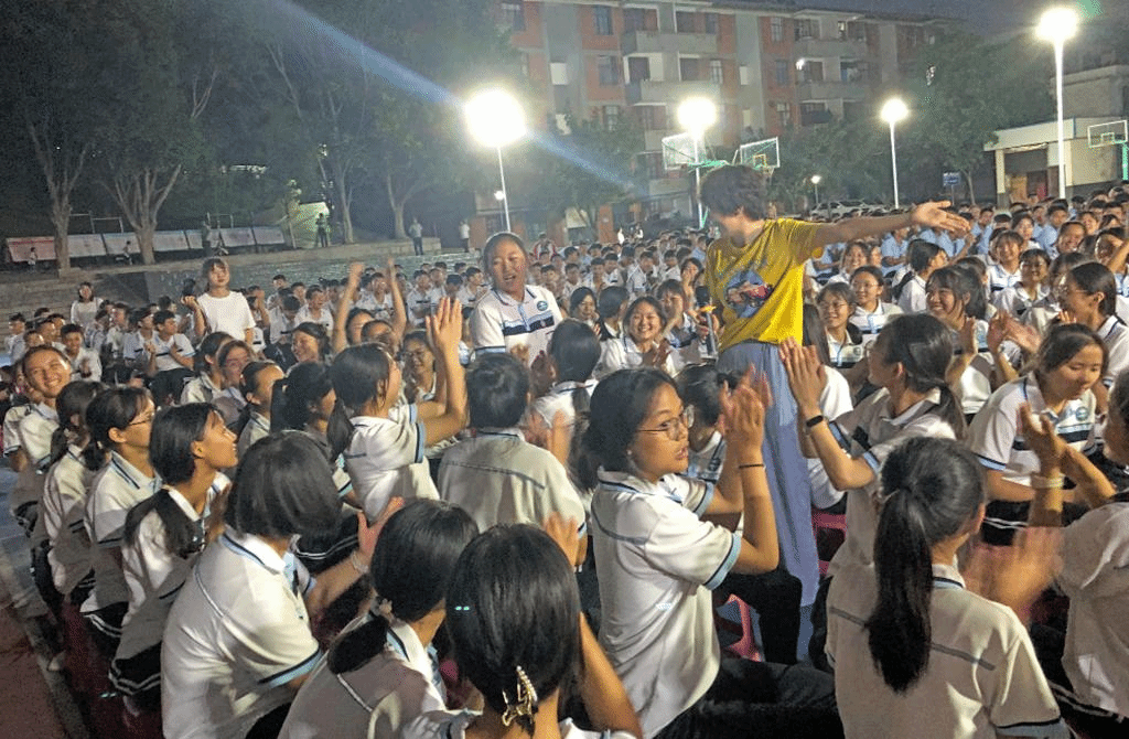 在弥勒市第二中学,师生们在户外通过“手指操”“大风吹”等一系列循序渐进的团辅活动,带领同学们认清压力、调节心态;通过才艺比拼,激发同学们勇于拼搏的昂扬斗志,提升决战中高考的信心。高三学生陈劲祥用一首彝族民歌《不要怕》把讲座气氛推上了高潮。