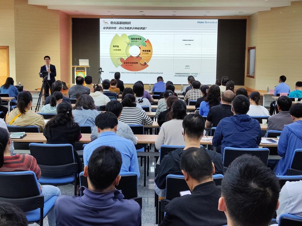 培训会上,培训专家对危化品的分类、存储和使用进行了详细讲解,并结合管理、使用和储存过程中各环节易发生的事故案例进行了分析。随后,以学生在昆明植物研究所华立楼A区202实验室发生浓硫酸渗漏导致实验人员灼伤为假想事故,模拟了学生在校外开展实验时突发安全事故的处置流程。最后的消防演练中,消防员详细讲解了干粉灭火器、灭火毯等消防器材的使用方法,现场组织指导大家实地进行实操培训和灭火演练。大家纷纷上前亲身体验,现场气氛十分活跃。