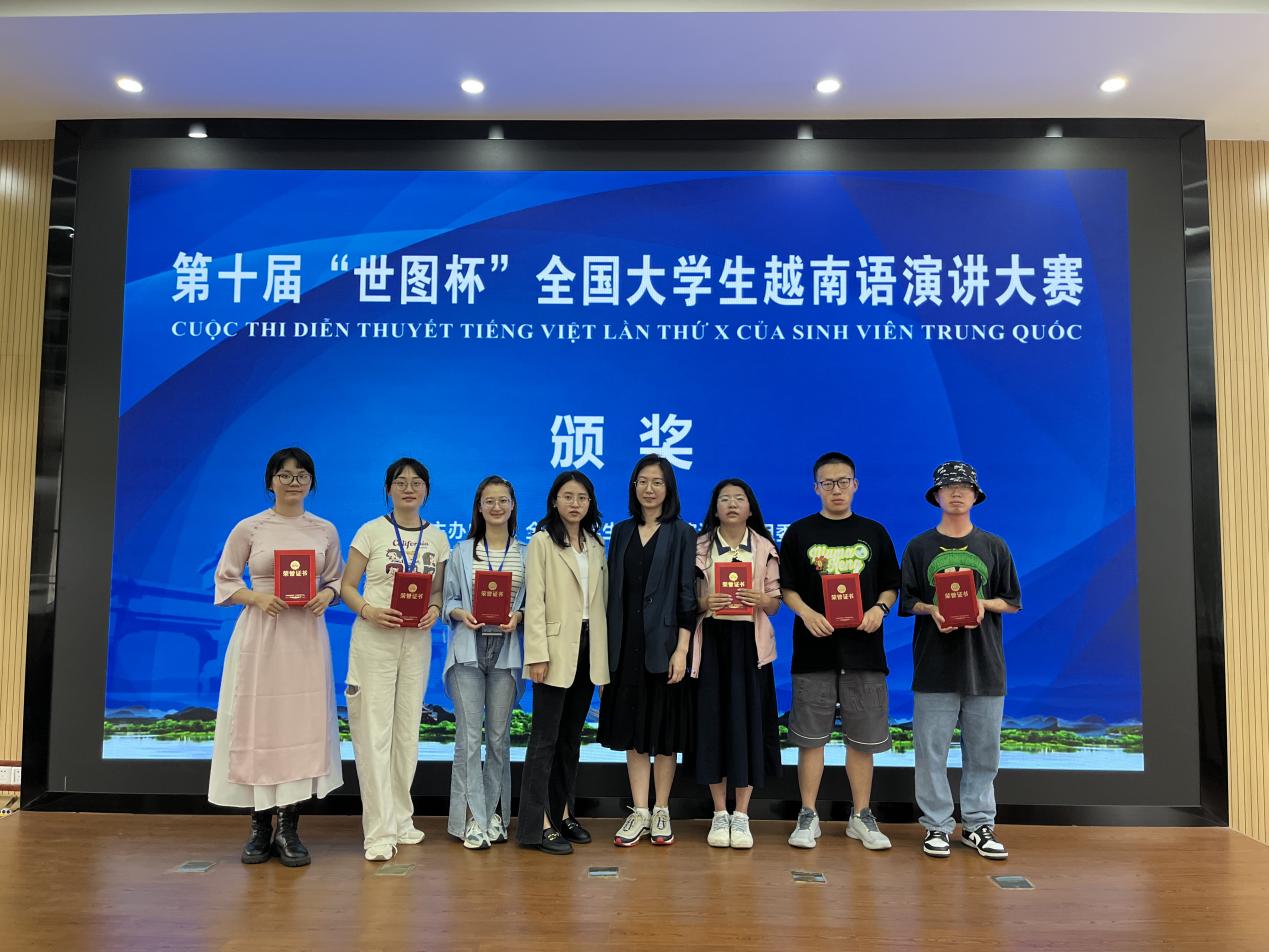 长期以来,外语学院始终积极鼓励师生参加各级各类学科竞赛,以赛促学、以赛促教。通过组织师生参加第十届“世图杯”全国大学生越南语演讲大赛,为提升师资队伍建设水平和人才培养质量奠定了坚实基础。