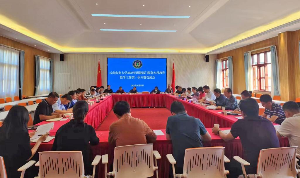 本站消息 5月22日,学校召开云南农业大学2023年职能部门服务本科教育教学工作第一次专题交流会,开展教育思想大讨论。校党委副书记徐华出席会议并提工作要求,副校长杨生超主持会议。各职能部门主要负责人,思政教育组全体成员,评建办公室专职副主任参加会议。
