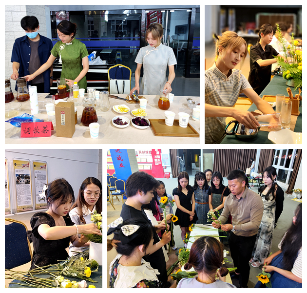 按照省人社厅、昆明市人社局关于做好2023年度大学生创业培训、职业技能培训工作相关要求,学校从2023年4月组织开展了省市两级的大学生免费职业技能和创新创业培训,共有97名毕业生参加了第一期茶艺师、插花花艺师2个职业技能项目的课程培训。本次活动是由就业与创新创业指导服务中心与承担培训教学任务的单位联合组织的一次教学模式创新活动,通过为学生们搭建一个检验学习成效、展现个人风采的学习交流平台,不断提高培训质量、技能理论以及动手能力,真正达到学以致用的培训目的。