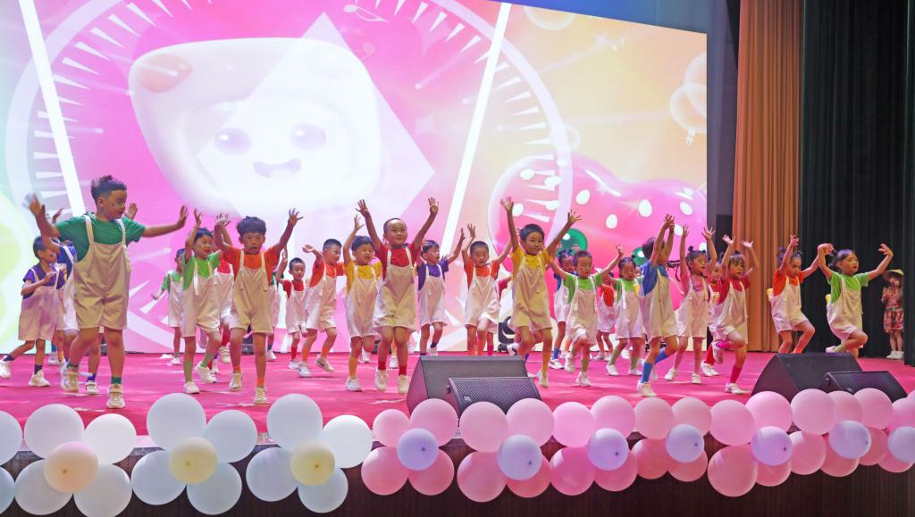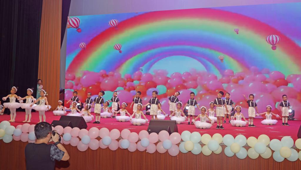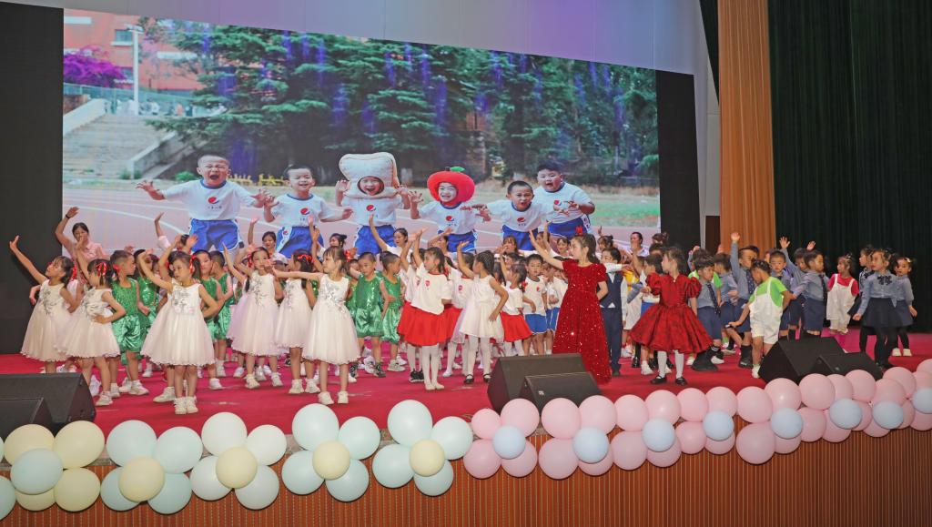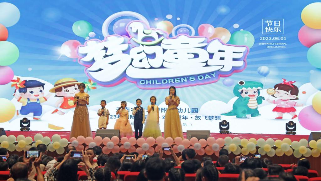 本站消息 6月1日,学校附属幼儿园在校友会堂举办了“2023年国际儿童节·欢乐童年·放飞梦想”主题活动,300余名幼儿和教师在梦幻舞台上呈现了15个独出心裁的节目,展现了幼儿的风采与天真可爱。其中《童心向党》节目磅礴的主旋律、恢弘的背景,展现了大国儿童风采,《唐宫夜宴》节目尽显文化自信。