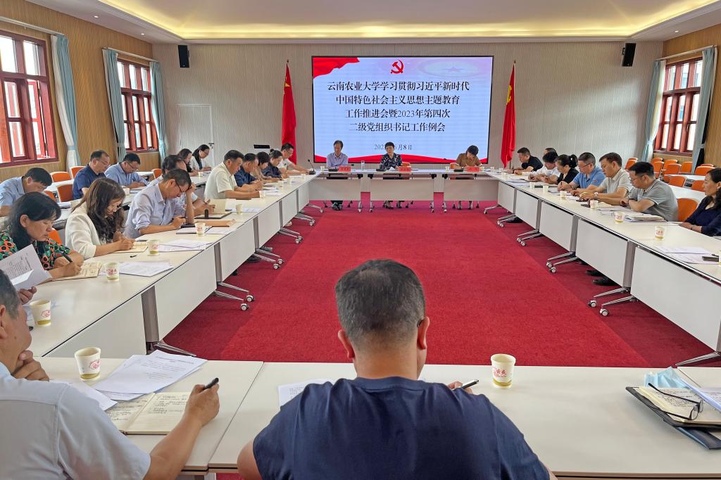 本站消息 6月8日,学校在校友会堂召开学习贯彻习近平新时代中国特色社会主义思想主题教育工作推进会暨2023年第四次二级党组织书记工作例会,深入推进学校主题教育和年度党建工作重点任务有效落实。会议由学校党委书记黎素梅主持,学校主题教育领导小组组长、副组长,主题教育领导小组办公室各组组长,各二级党组织书记和有关部门负责人参加。