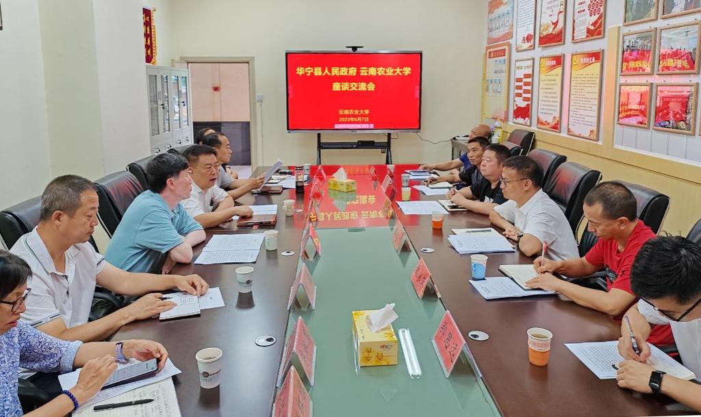 范源洪介绍了学校基本情况,详细了解了华宁县产业发展需求。李鹏飞感谢学校多年来对华宁县的帮助和支持,他介绍了华宁县的基本情况,希望与学校在柑桔品种选育、品质提升、品牌打造以及蔬菜和中草药产业等方面开展深入合作,借助学校科技人才优势,助力华宁县产业发展和乡村振兴。双方就近期组织专家团队开展调研并尽快推进新一轮校县合作协议签订达成了共识。