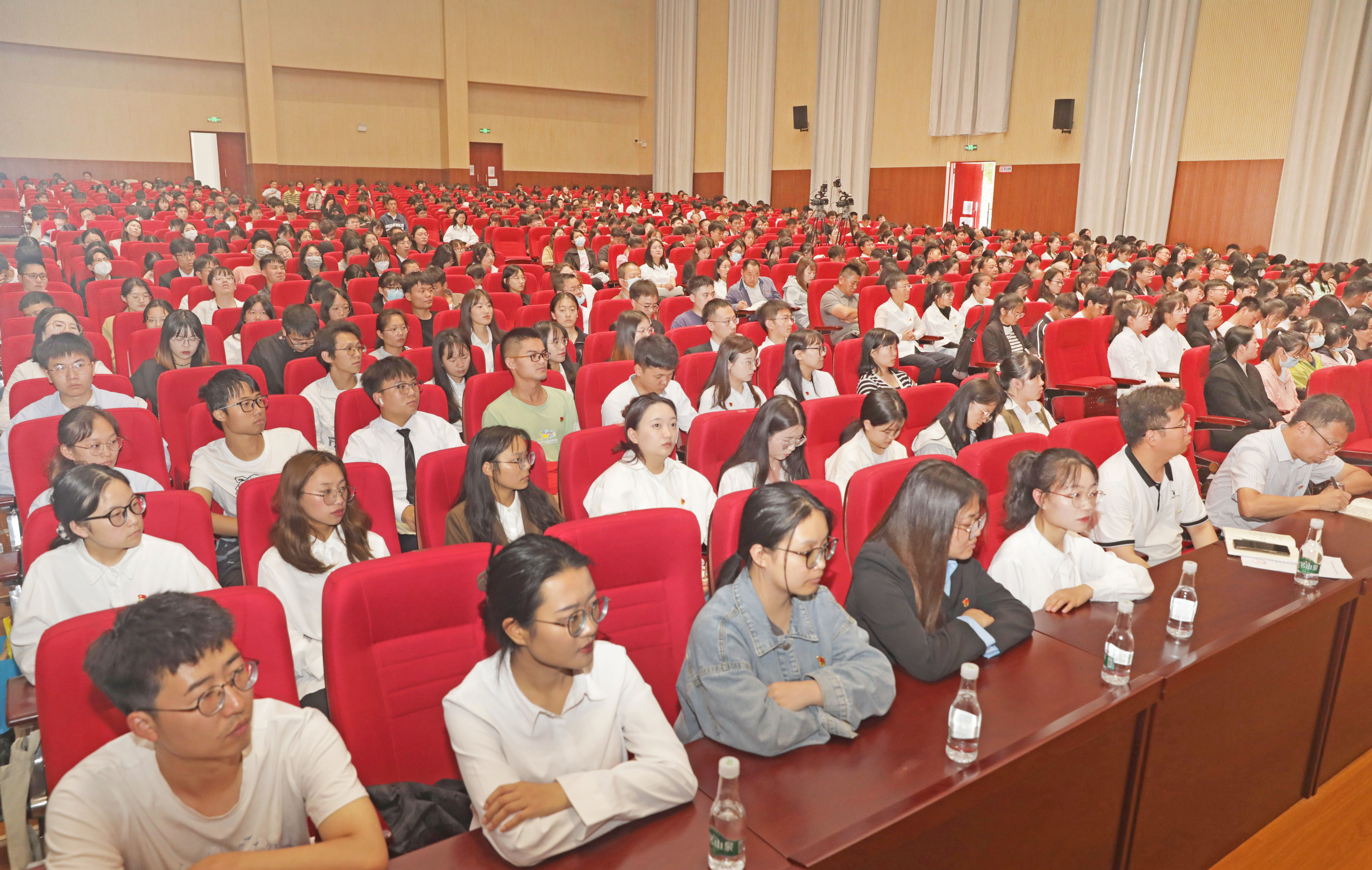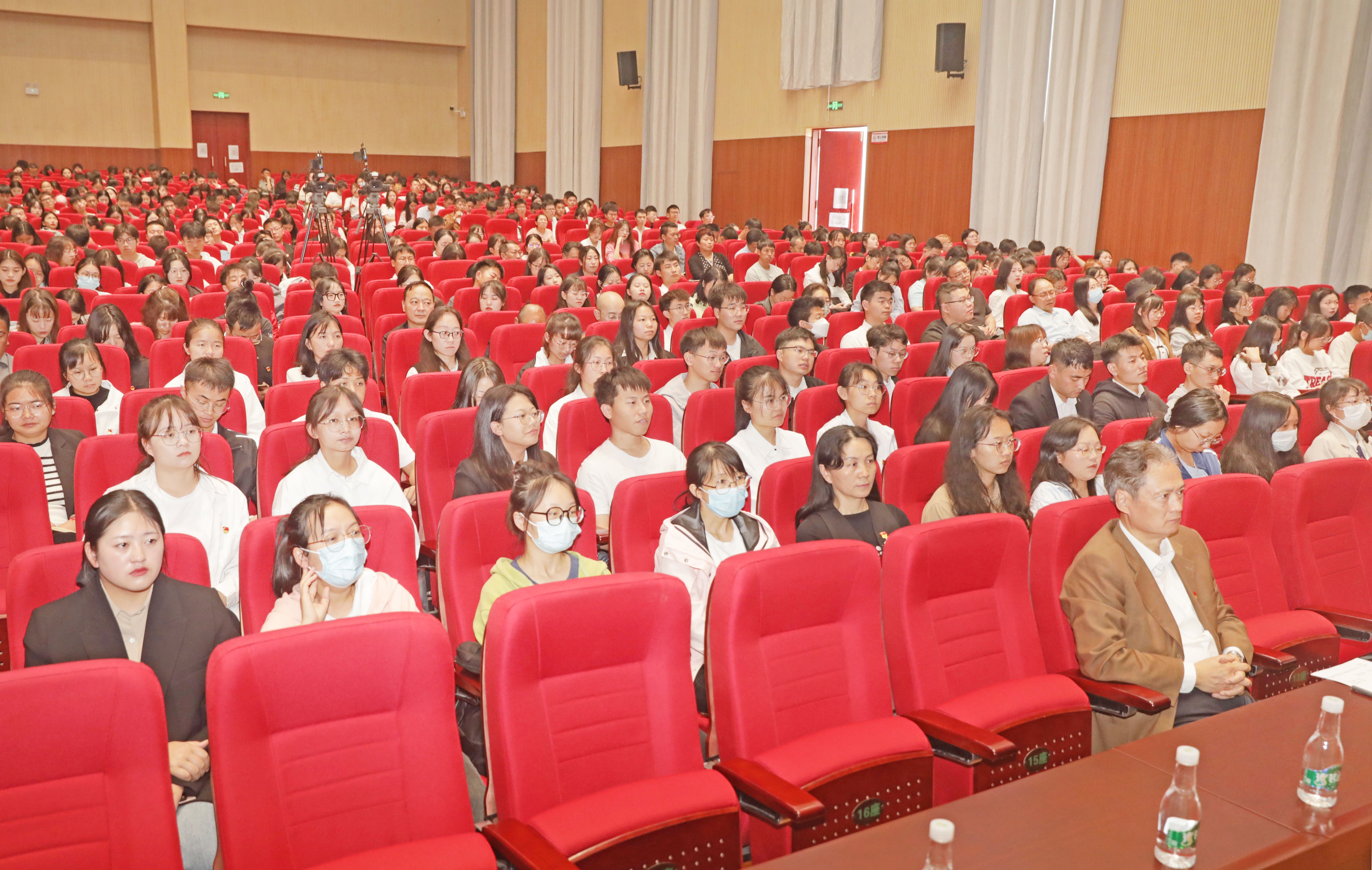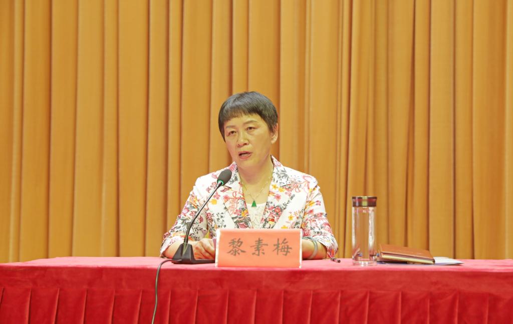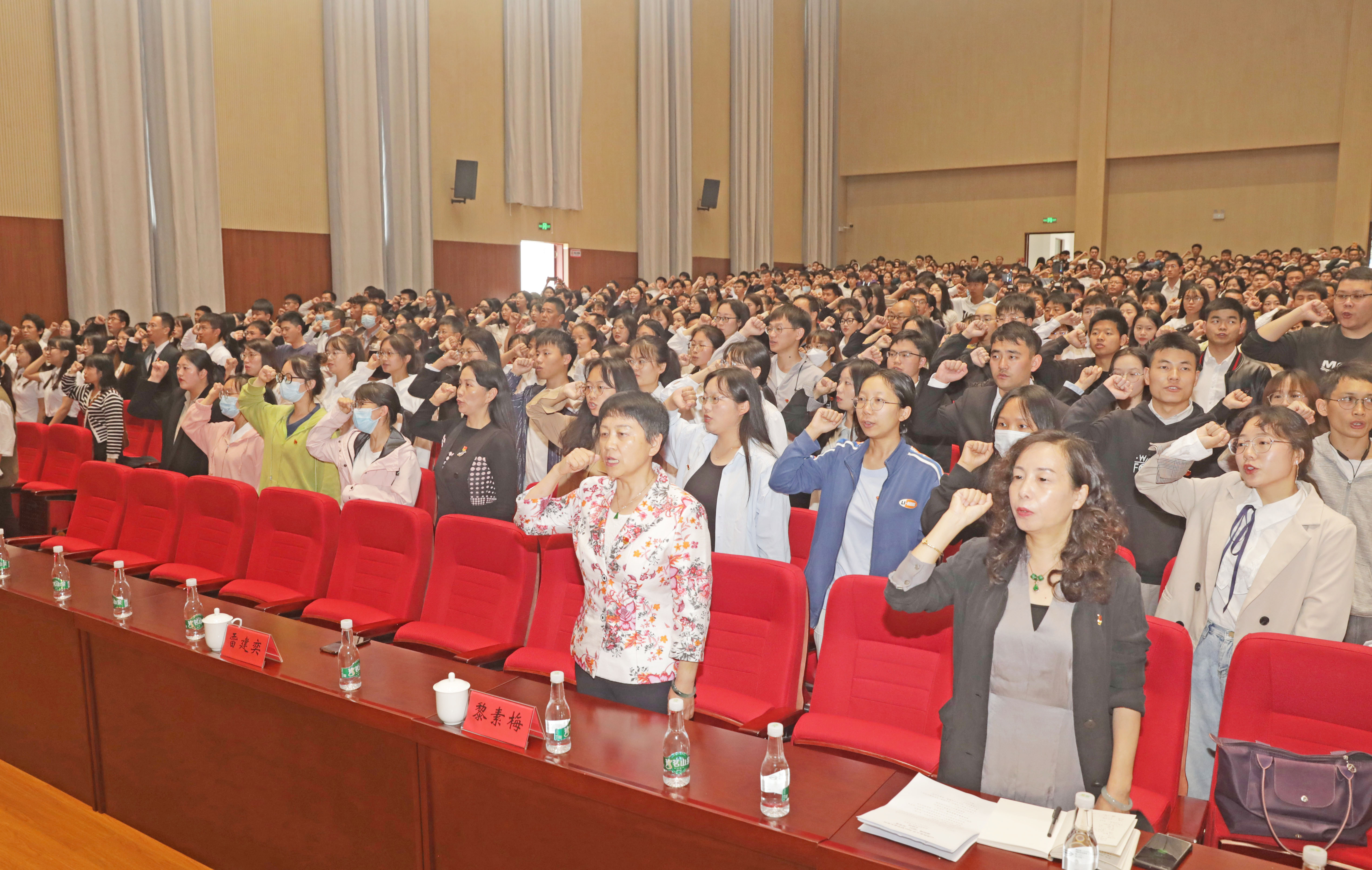 本站消息 6月15日下午,校党委书记黎素梅在校友会堂为2023届毕业生党员上离校前“最后一堂党课”。校党委副书记雷建奕主持,各学院党委书记、副书记、组织员,就业与创新创业指导服务中心全体人员,以及2023届毕业生党员代表共700余人参加党课。
