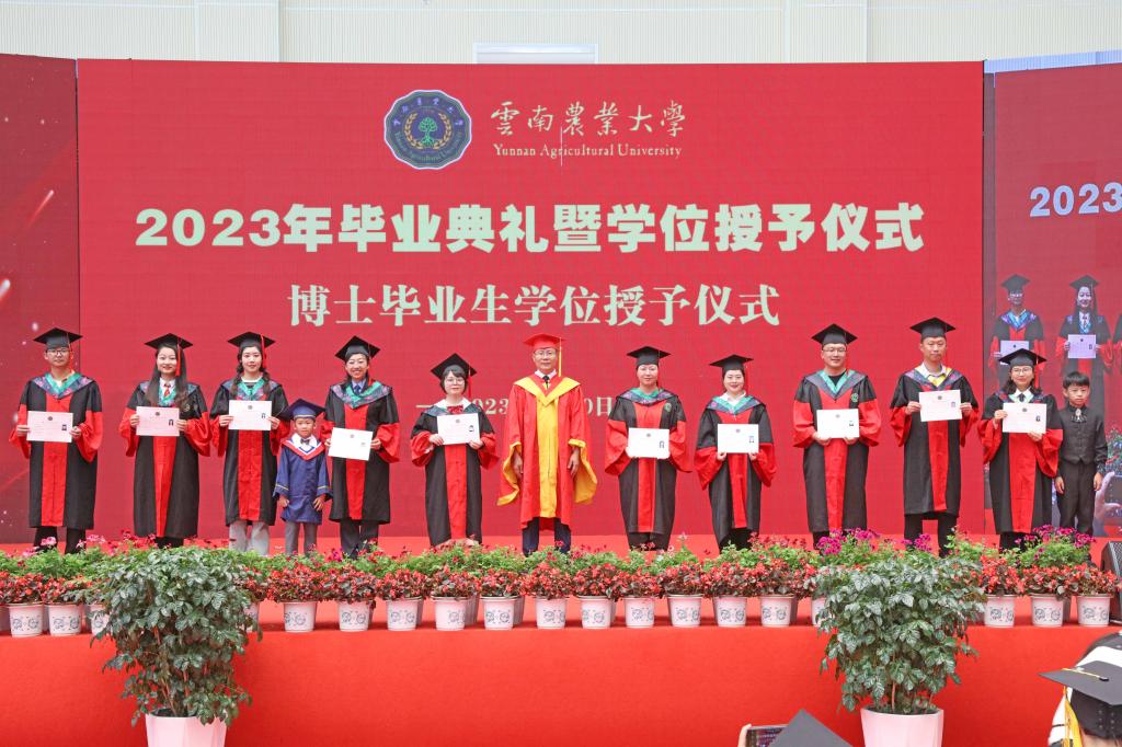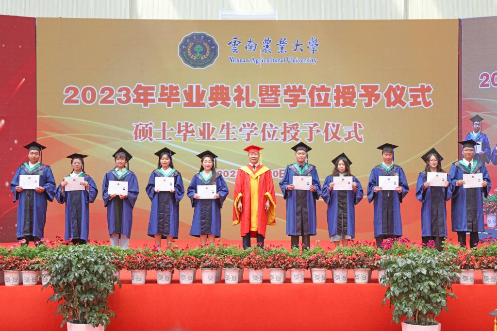 李永和以“找寻苦中乐 磨得人生玉”寄语毕业生,一是志存高远、锤炼品格。要向朱有勇院士学习,传承弘扬“把论文写在祖国大地上”的精神基因,紧握新时代的接力棒,做一个对国家对社会有益的人,让奋斗成为青春最亮丽的底色。二是砥砺前行、服务社会。要学会“自找苦吃”,勇敢面对困难和挑战,在不断吃苦中取到“真经”,成为真正的强者,创造出无愧于青春、无愧于时代的业绩。三是勇挑重担,成就梦想。要认真学习习近平总书记给云南大学建校百年的贺信精神和给中国农业大学科技小院师生们的回信精神,牢记我们都是“收信人”,积极践行向党和人民许下的“请党放心、强国有我”的铿锵誓言。