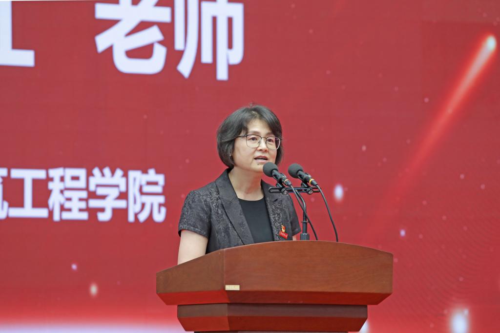 教师代表、建筑工程学院丁江老师希望毕业生坚守初心,以乐观、积极、进取、开放的心态去面对新征途;坚持学习,不断提高学术水平和实践能力去迎接新挑战;怀抱梦想,以坚韧的心去追逐梦想去实现新追求。