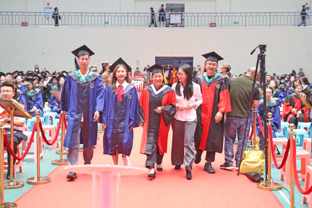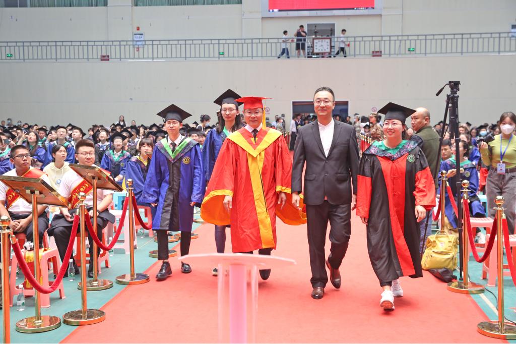伴随着动听的校园歌曲快闪,毕业典礼在学校领导和学院领导陪伴毕业生代表走红毯的温馨氛围中拉开帷幕。