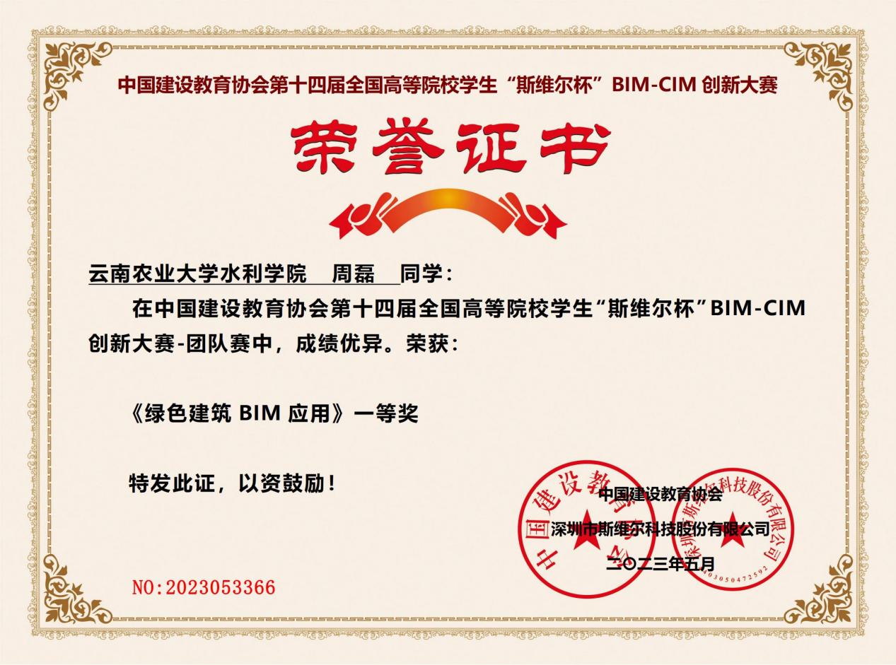本站消息 近日,在第十四届全国高等院校“斯维尔杯”BIM-CIM创新大赛总决赛中,我校水利学院代表队荣获一等奖两项、二等奖一项,充分展示我校学子的创新能力和综合素质。