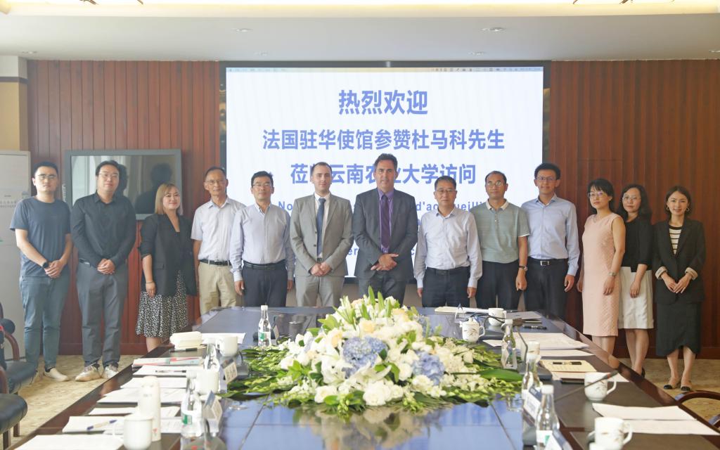 本站消息 8月1日下午,法国驻华大使馆教育参赞杜马科先生和法国驻成都总领事馆科技项目官员卜凡先生来访我校。副校长魏红江、朱书生以及对外合作交流处、植物保护学院、农业生物多样性应用技术国家工程研究中心的负责人及相关老师参加会议。会议由对外合作交流处副处长刘娟主持。