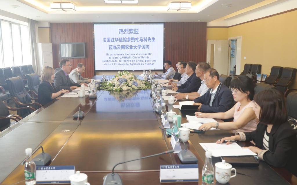 会上,魏红江代表学校对法方代表团的来访表示了热烈欢迎,介绍了我校办学的主要优势、亮点和成绩,并对双方未来的合作表达了积极的期望。农业生物多样性应用技术国家工程研究中心副主任黄惠川向法方嘉宾详细介绍了“中法国际联合实验室”的主要研究工作进展及新一期合作计划等。