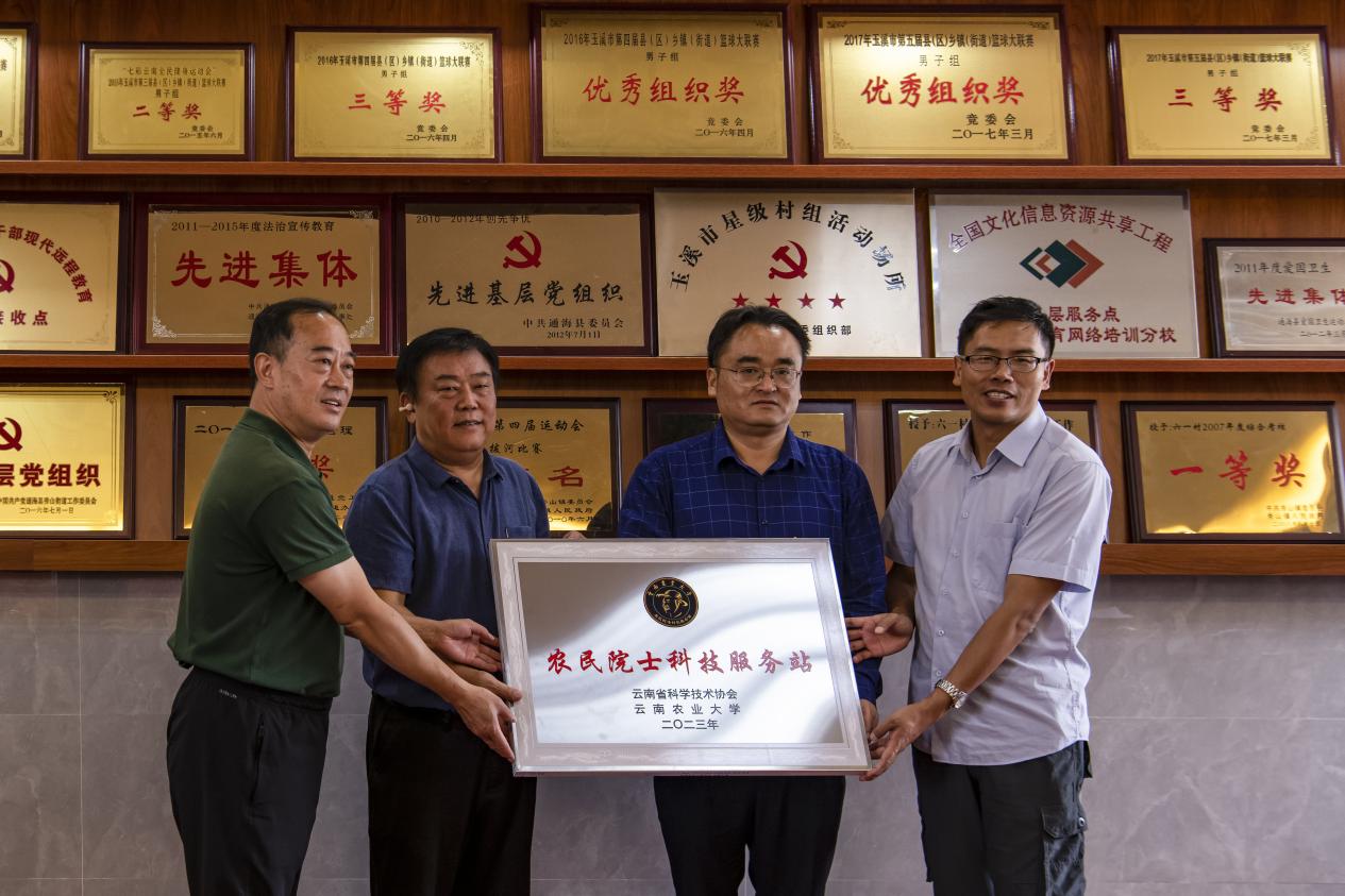 调研期间,在六一社区召开通海农民院士科技服务站座谈会,并举行授牌仪式。通海县副县长王华明,学校相关部门、通海农民院士科技服务站相关负责人,通海县、街道和社区相关部门领导参加了座谈会和授牌仪式。范源洪就通海农民院士科技服务站的发展定位,如何做好人才培养和服务地方经济社会发展,以及未来如何开展工作提出了希望和要求。