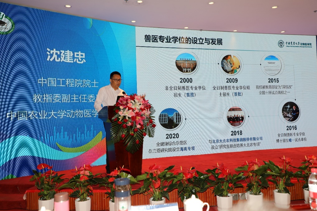 中国工程院院士、教指委副主任委员、中国农业大学动物医学院院长沈建忠教授做了题为《关于兽医专业学位研究生培养的一点体会》的首场报告。