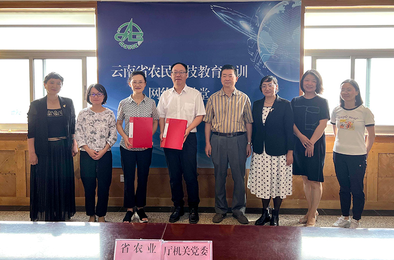 受学校委托,继续教育学院(云南农村干部培训基地)副主任杨文良与云南省农业广播电视学校校长付晴岚签订了采购合同,云南省农业农村厅人事处、相关培训机构负责人出席会议。付晴岚主持签字仪式并对项目实施作出具体的要求与部署,她从宏观质量监控到具体实施微观把控,提出了具体要求,并要求中标单位要突出重点,抓牢抓实培训,真正为云南农业农村发展提供更强有力的人才支持。