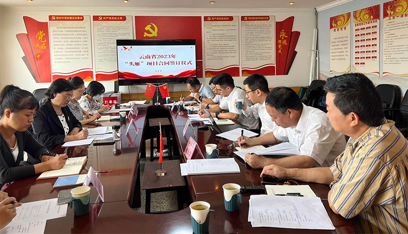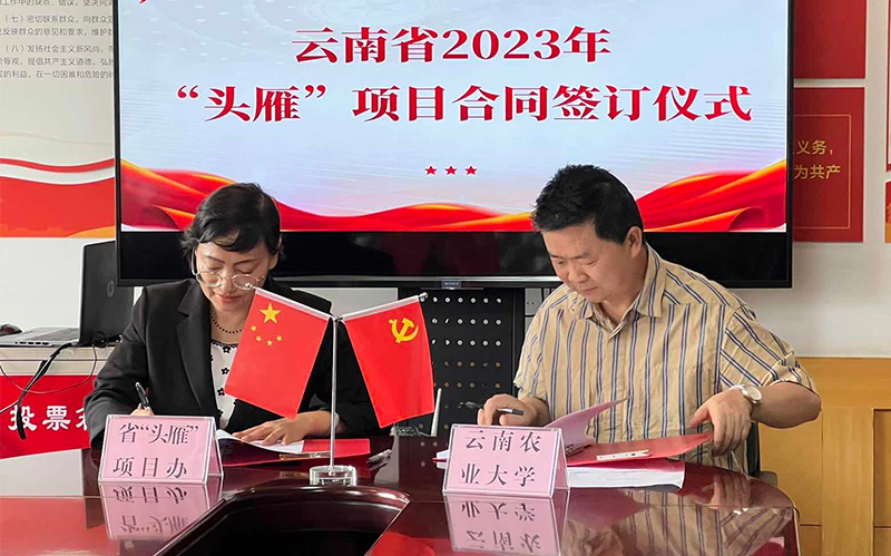 本站消息 8月10日上午,根据云南省 2023 年乡村产业振兴带头人培育“头雁”项目中标公告,学校与中山大学、华中农业大学成为我省 2023 年乡村产业振兴带头人培育 “头雁”项目实施的培育机构。为推进 2023 年项目有序实施,学校与采购方云南省农业广播电视学校正式签订《云南省乡村产业振兴带头人培育“头雁”项目》政府采购合同。校党委副书记黄鹤平出席签字仪式。