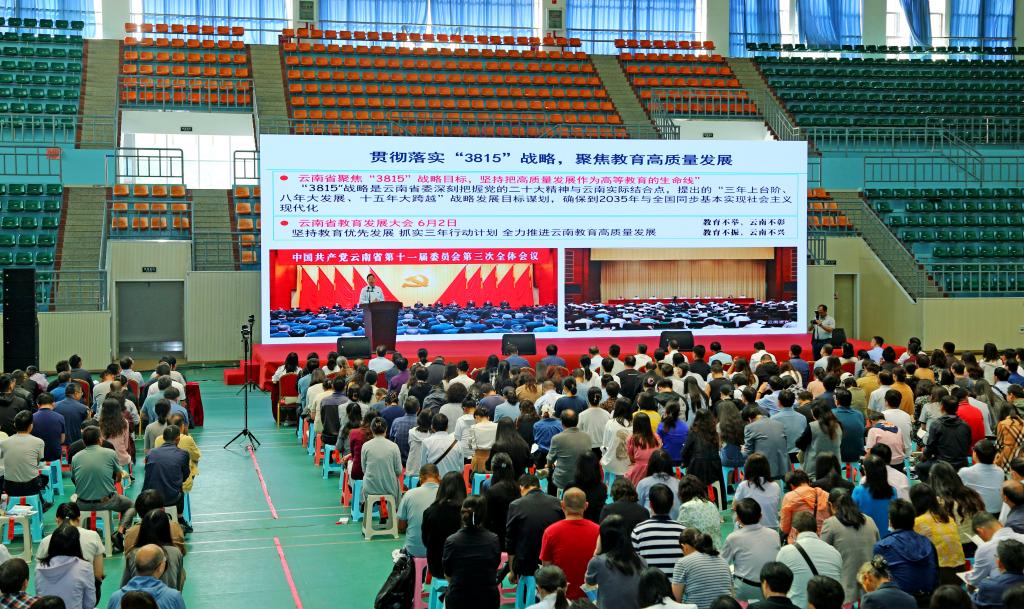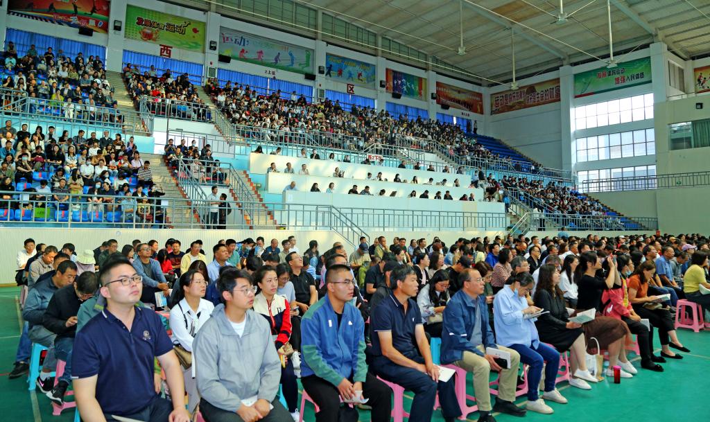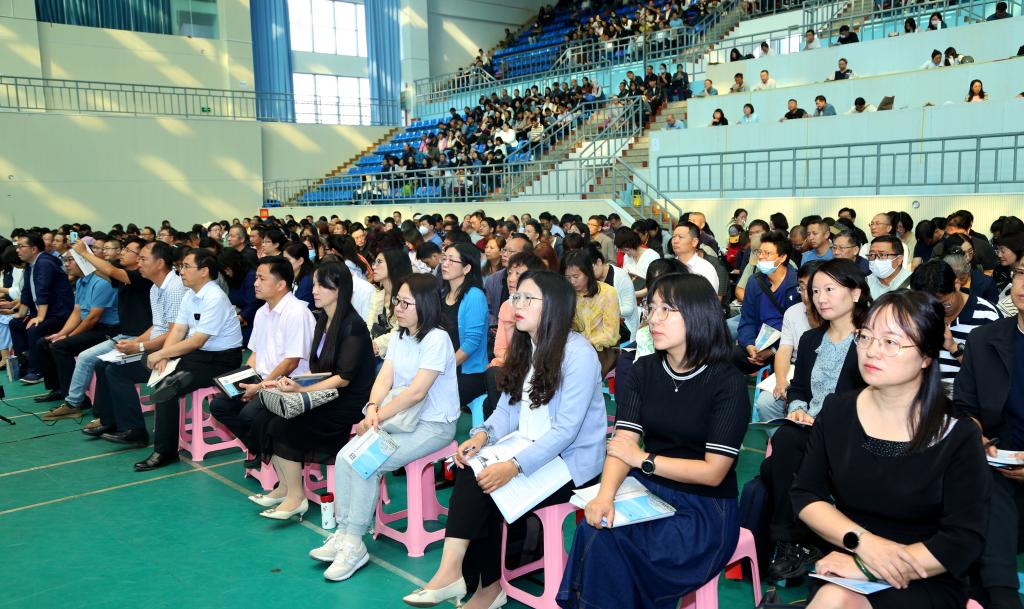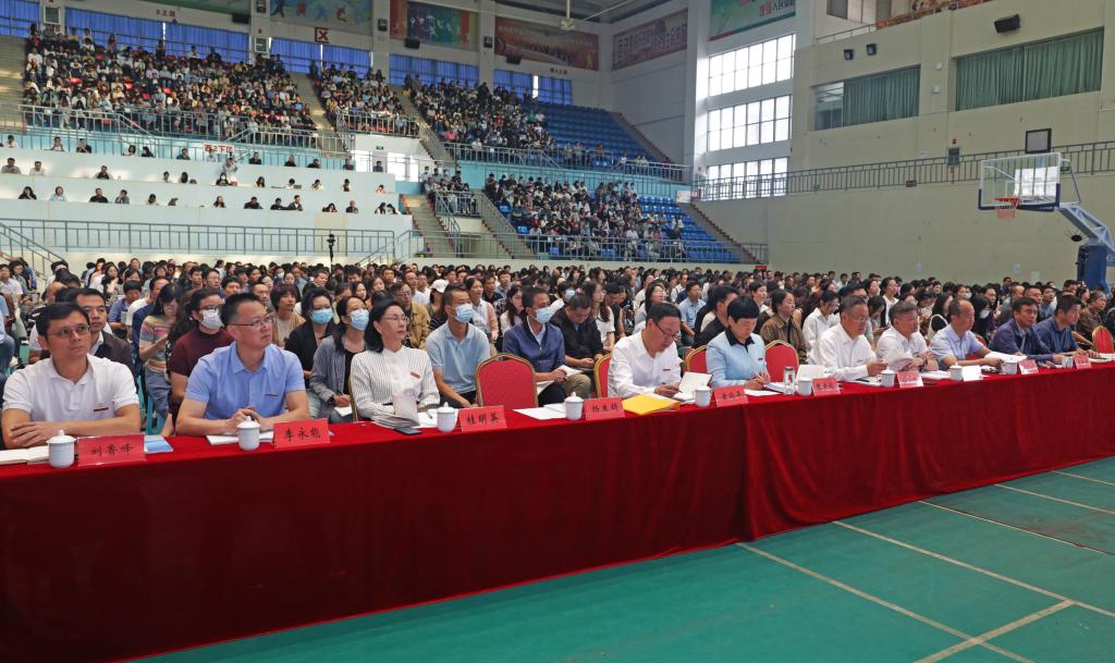 本站消息 为迎接新一轮本科教育教学审核评估,9月8日上午,学校在体育馆召开2023年本科教育教学审核评估工作宣讲会。校党委书记黎素梅讲话,校长李永和主持,在家校党政领导班子成员出席,全校1500余名师生员工参加,热作学院通过线上会议参加。