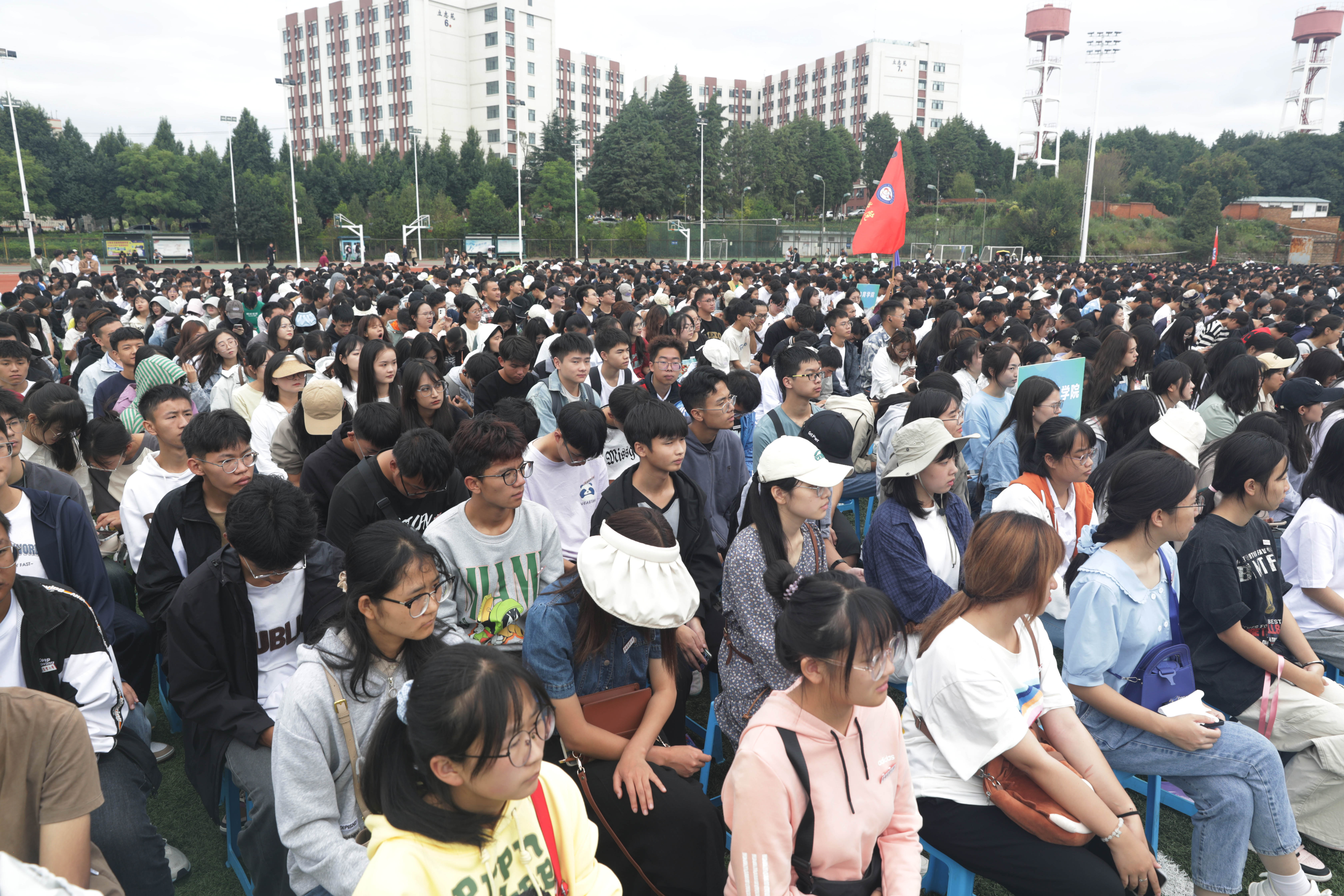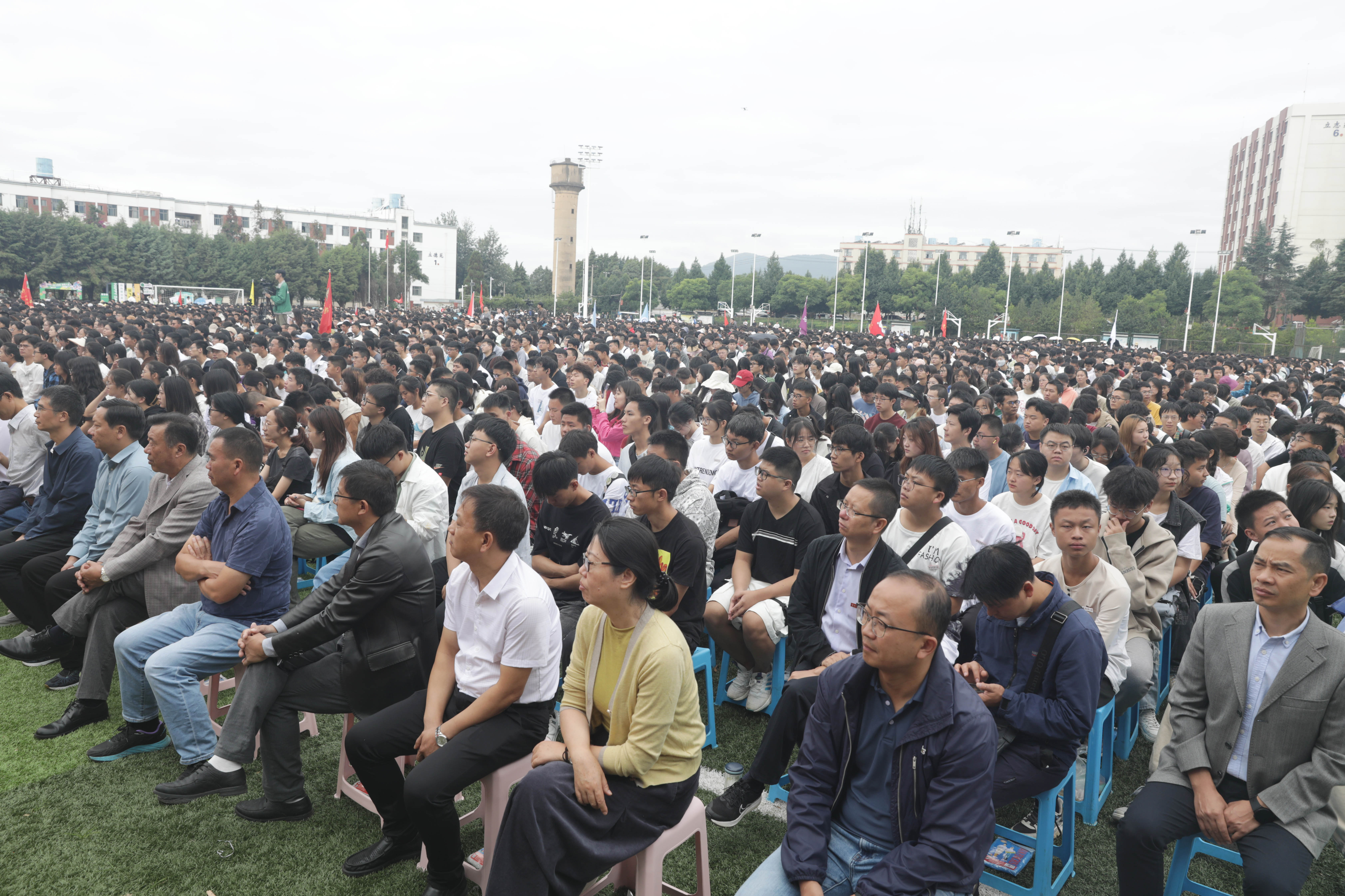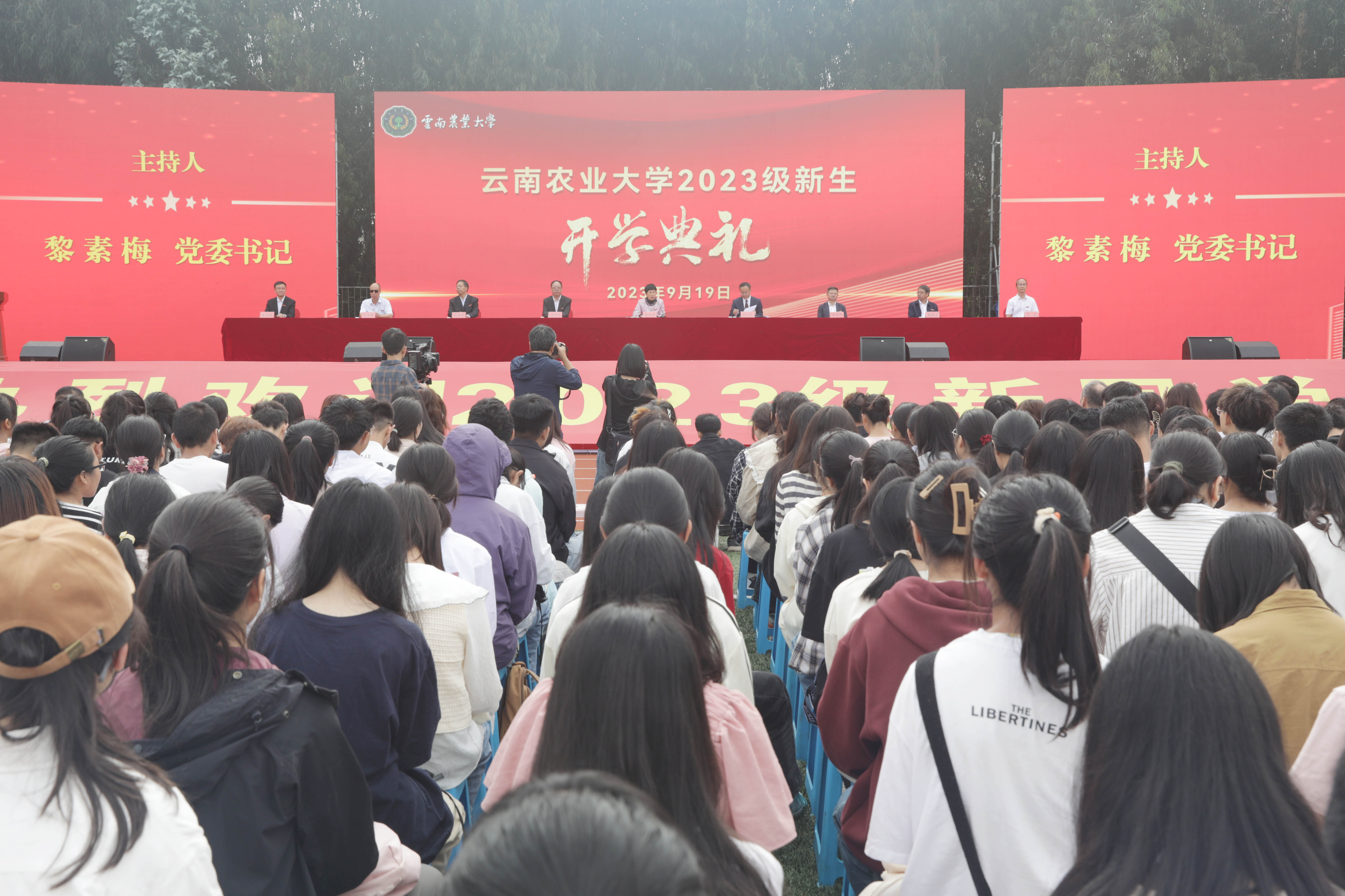 本站消息 9月19日,学校在校本部足球场以线上和线下相结合的方式举行2023级新生开学典礼。校党委书记黎素梅主持开学典礼,校长李永和等党政领导班子成员出席,各学院、部门主要负责人和师生代表、校友代表,全体2023级新生参加开学典礼。普洱校区在分会场同步收看直播。