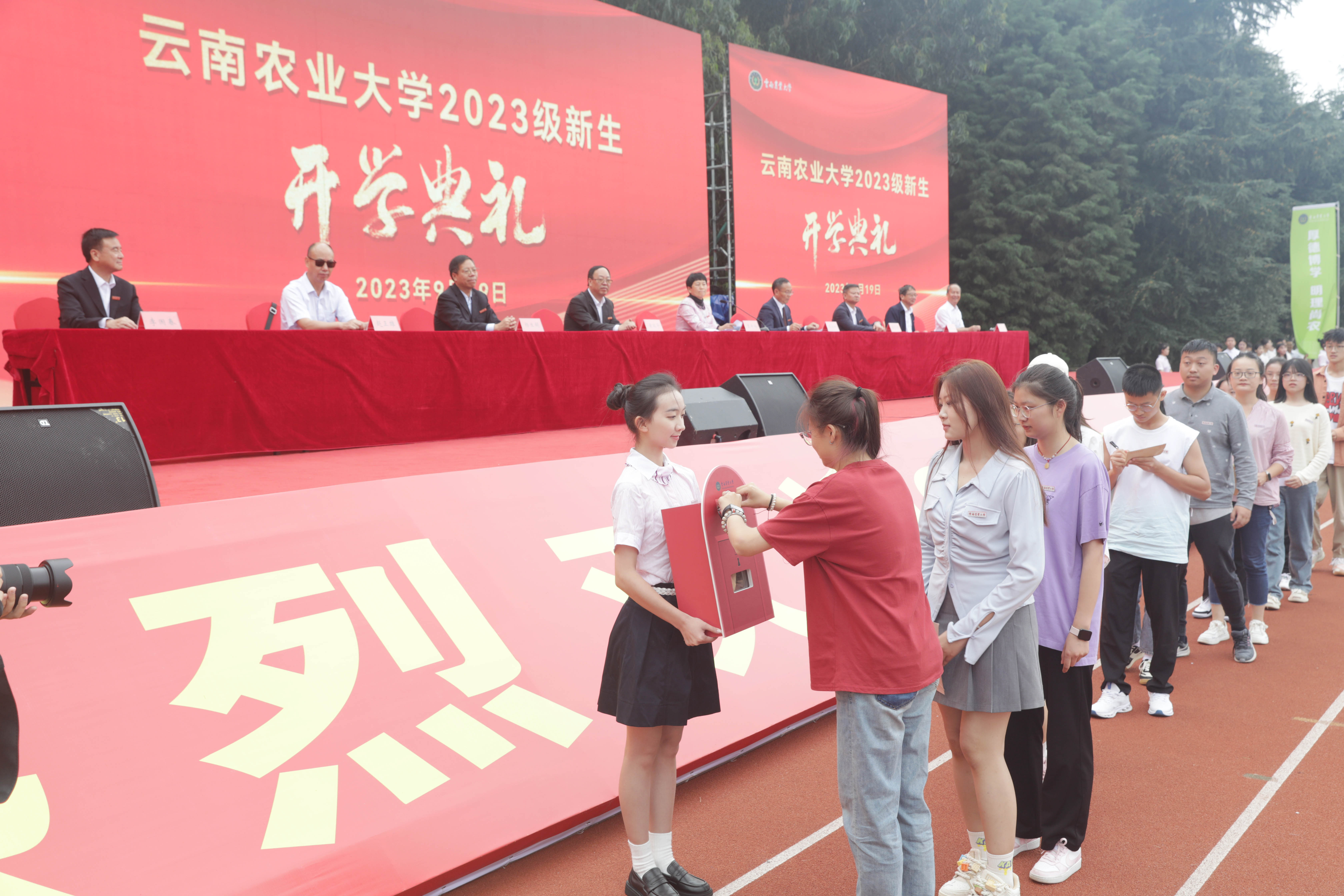 黎素梅书记、李永和校长等校领导为新生代表佩戴校徽,表达对新同学们的祝贺、欢迎和期待。从戴上校徽的那一刻起,新同学们便与学校血脉相连,云农薪火在传承中生生不息,汇聚成奋进新时代的精神力量。