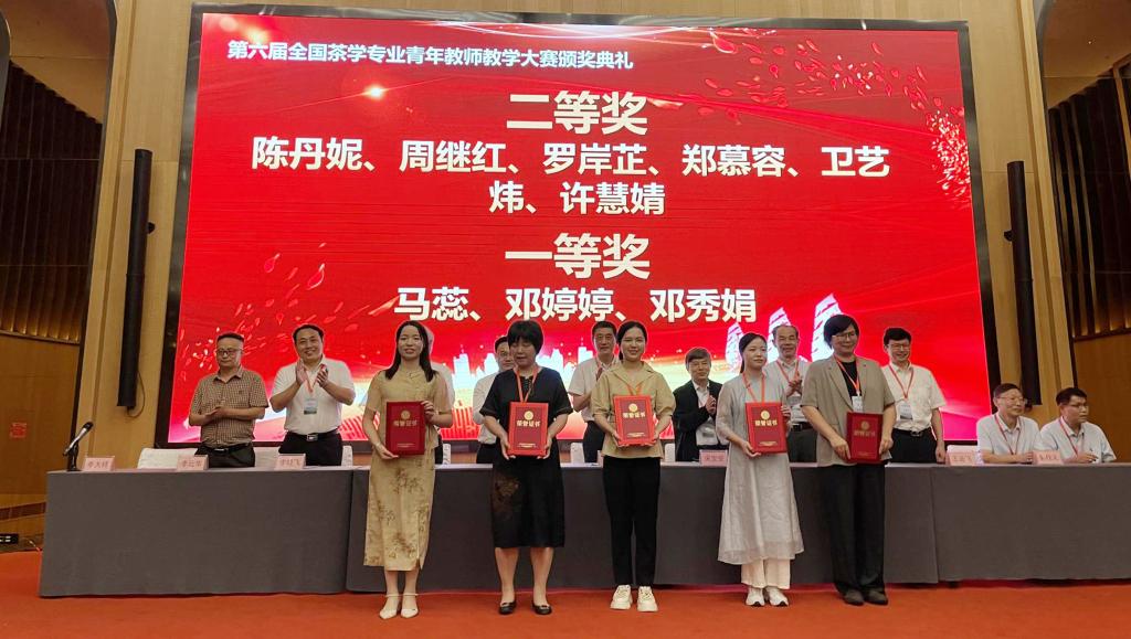 本站消息 9月16-17日,主题为“三茶统筹谋发展,资源共享创一流 ”的2023年全国高等农业院校茶学专业建设与学科发展研讨会在贵州大学举行。会议为第六届茶学专业青年教师教学大赛获奖人员颁奖,我校茶学院教师邓秀娟在此次比赛中表现优异,荣获大赛一等奖。