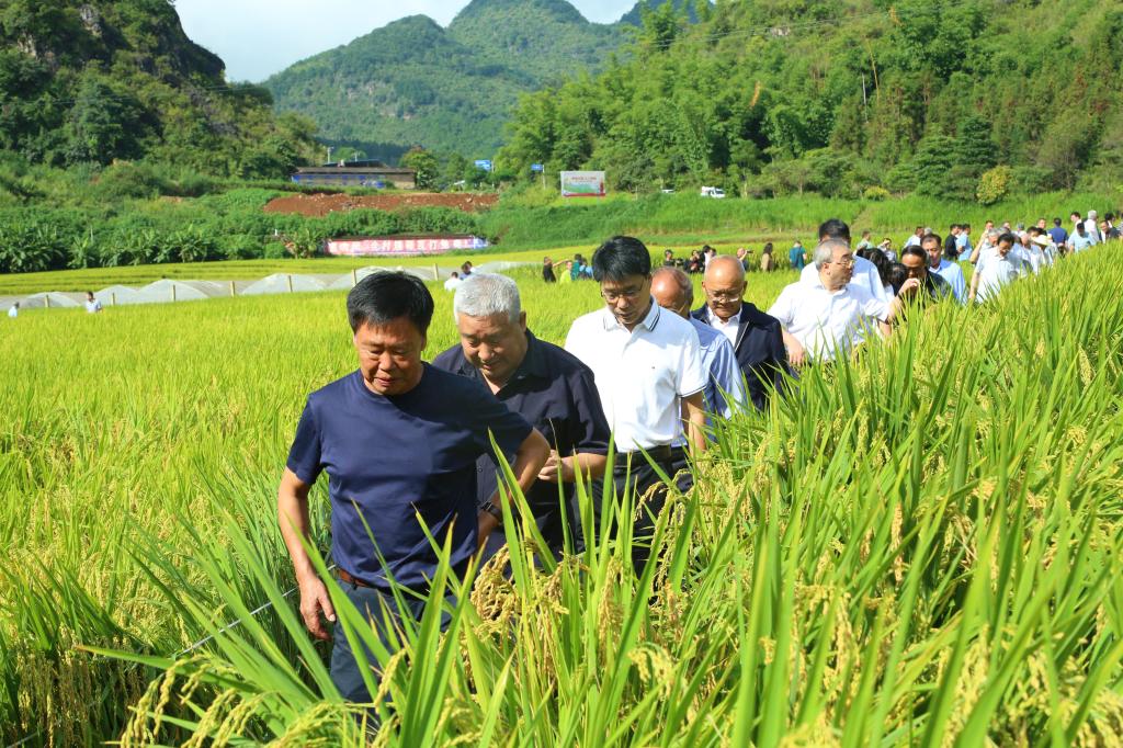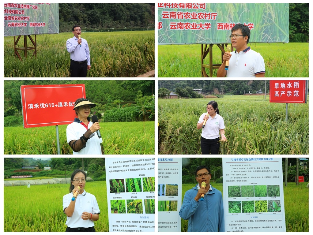 在竹塘乡蒿枝坝和哈果马旱地水稻示范区,专家学者和各级领导深入田间地头参观调研,一株株黄澄澄的稻穗压弯了腰,稻谷颗粒饱满。旱地水稻技术团队就旱地水稻品种、栽培技术、病害、虫害、草害发生及防控要点进行介绍。