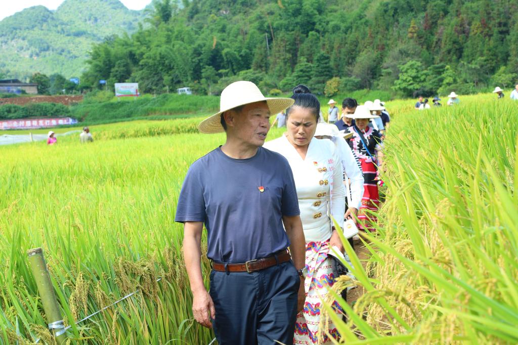 党的二十大报告指出,“要加快建设农业强国,扎实推进乡村产业、人才、文化、生态、组织振兴”,为深入学习贯彻党的二十大精神,代表们相约来到竹塘乡蒿枝坝和哈果马旱地水稻种植示范区,旱地水稻技术团队成员何霞红、文建成、陈丽娟、蔡红、郭力维、杜广祖、汤东生、李娟就全省旱地水稻种植情况、旱地水稻品种、栽培技术、病害、虫害、草害发生及防控要点进行介绍。
