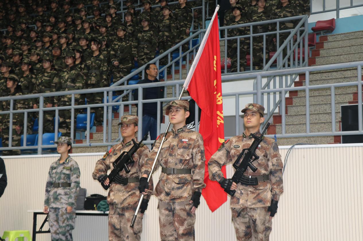 全体师生共唱国歌,大会在雄壮激昂的国歌声中拉开帷幕,全体参训学生整装肃立、静待训阅。