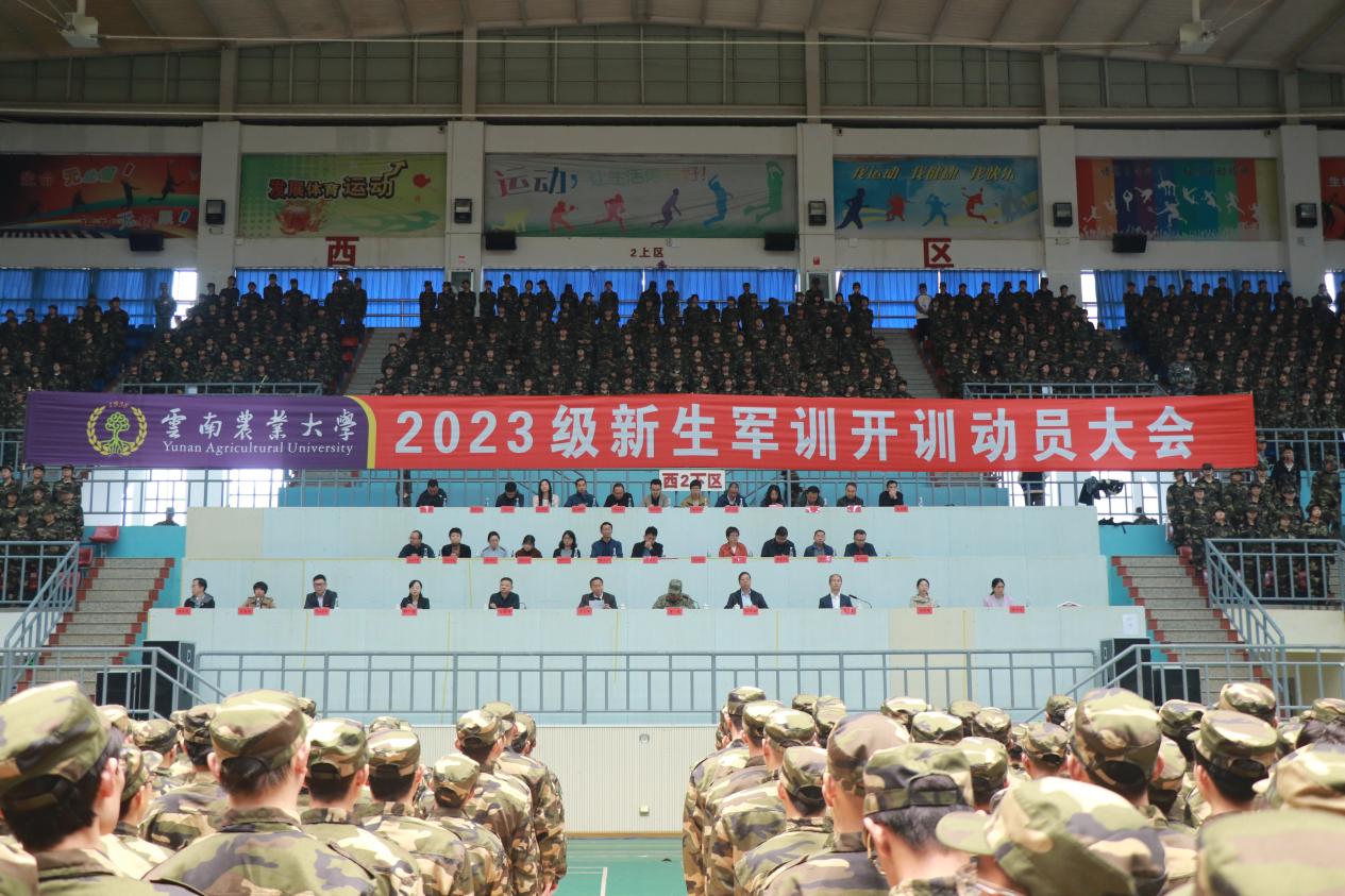 本站消息 10月9日,学校2023级新生军训开训动员大会在西校区体育馆隆重举行。校长李永和,纪委书记王爱平,副校长杨生超、张慧,盘龙区人民武装部副部长李龙中校,学校相关部门负责人、校本部各学院党委副书记以及负责军训的工作人员参会。副校长李宏主持动员大会。