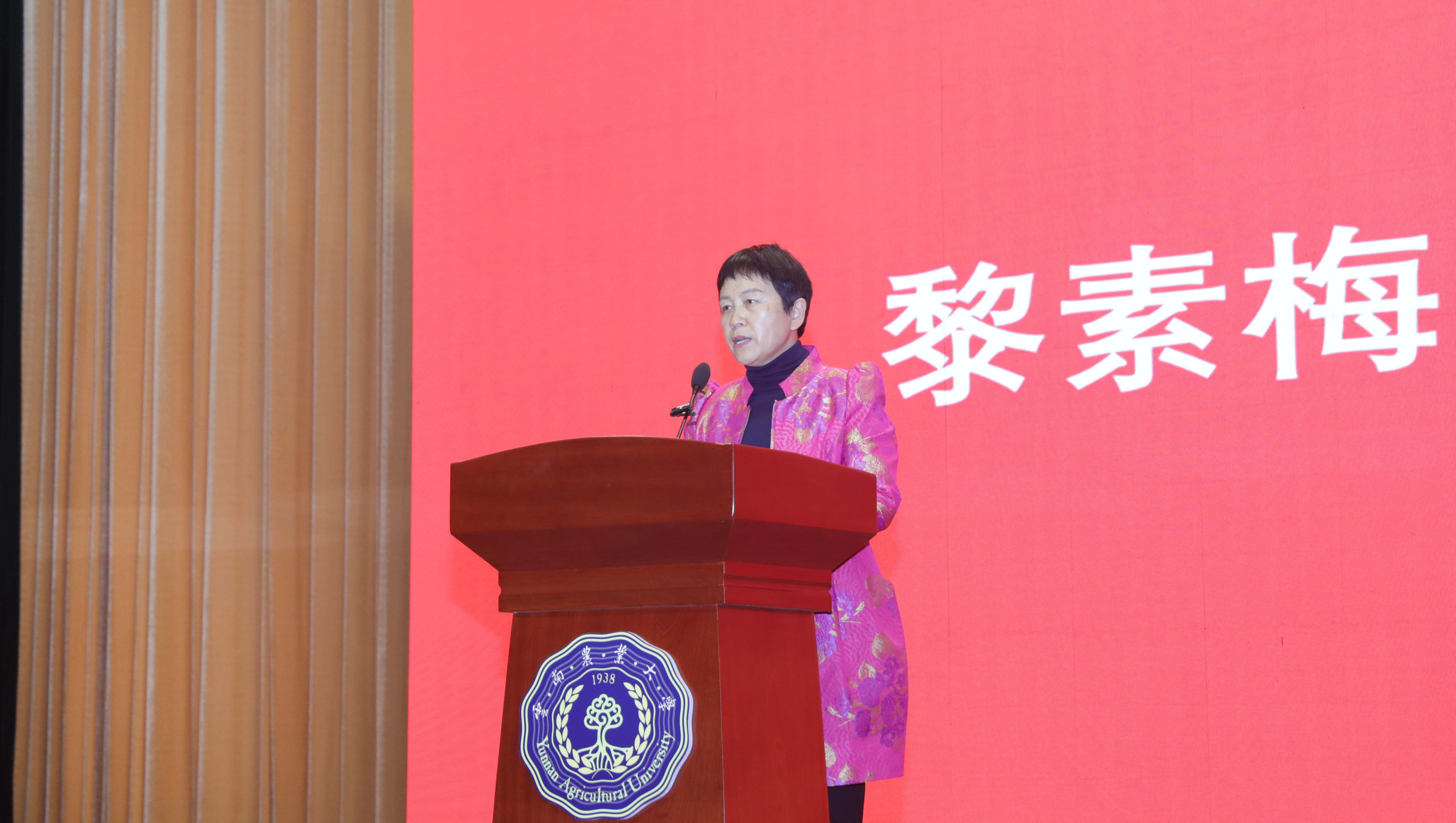 黎素梅代表全体师生员工向全校离退休老同志致以最诚挚的节日祝福和崇高敬意。她充分肯定了老同志们在学校建设发展和志愿服务工作中发挥的积极作用。她指出,各位离退休老教师是学校前进发展的强大动力,是我们的榜样和力量。长期以来,广大离退休教师退休不褪色、退休不退志、退休不退责,不断释放“银发”正能量,为学校各项事业蓬勃发展持续发力。希望广大离退休老同志保重身体,珍惜晚年幸福时光,永远听党话、跟党走,一如既往地关心和支持学校的改革发展,为学校的高质量发展建言献策,继续为党的教育事业、为学校的蓬勃发展发光发热。