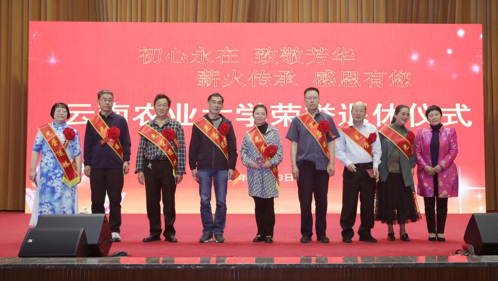 本站消息 为弘扬中华民族敬老、爱老的优良传统,丰富广大离退休教职工文化生活,把云农人情系稼穑、躬耕疆域的精神延续下去,10月23日重阳节之际,学校举办2023年荣誉退休仪式暨金婚祝寿庆典活动。校党委书记黎素梅出席活动并致贺辞,校长李永和主持敬老活动,校党委副书记徐华、相关部门负责人及近500名离退休教职工参加活动。