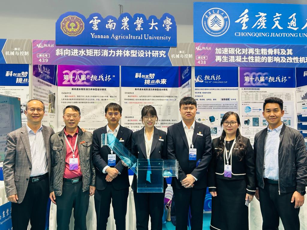 本站消息 10月27日至31日,由共青团中央、中国科协、教育部、中国社会科学院、全国学联、贵州省政府共同主办的第十八届“挑战杯”全国大学生课外学术科技作品竞赛在贵州大学举办。校党委委员、副校长李宏及学校相关负责人带领学生参赛,水利学院《斜向进水矩形消力井体型设计研究》参赛项目荣获第十八届“挑战杯”全国大学生课外学术科技作品竞赛主体赛二等奖。