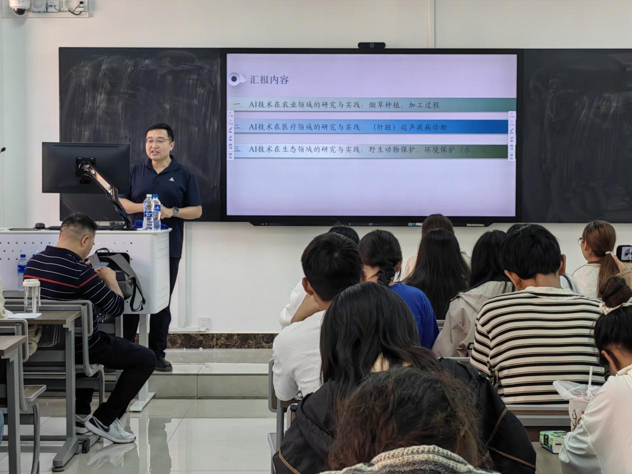 本站消息 10月27日下午,云南财经大学冯涛教授做客学校“红土地”大讲堂,在工科中心B303教室作题为“AI技术在农业、医疗、生态等领域的研究与实践”的专题讲座。讲座由大数据学院副院长彭琳主持,全校60余名师生参加。