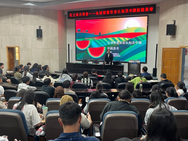 本站消息 11月10日,中国农业机械流通协会智慧农业专委会副秘书长袁勇富受邀做客学校“红土地”大讲堂,作题为“全球智慧农业认知及中国实践思考”的学术报告。讲座由农学与生物技术学院、云南省作物生产与智慧农业重点实验室、云南种业创新研究院、科学技术处联合举办,云南省作物生产与智慧农业重点实验室主任李彤教授,农学与生物技术学院院长李建宾教授,北京大蚯蚓数字科技有限公司董事长李迅,农学与生物技术学院师生等共150余人到场聆听报告。