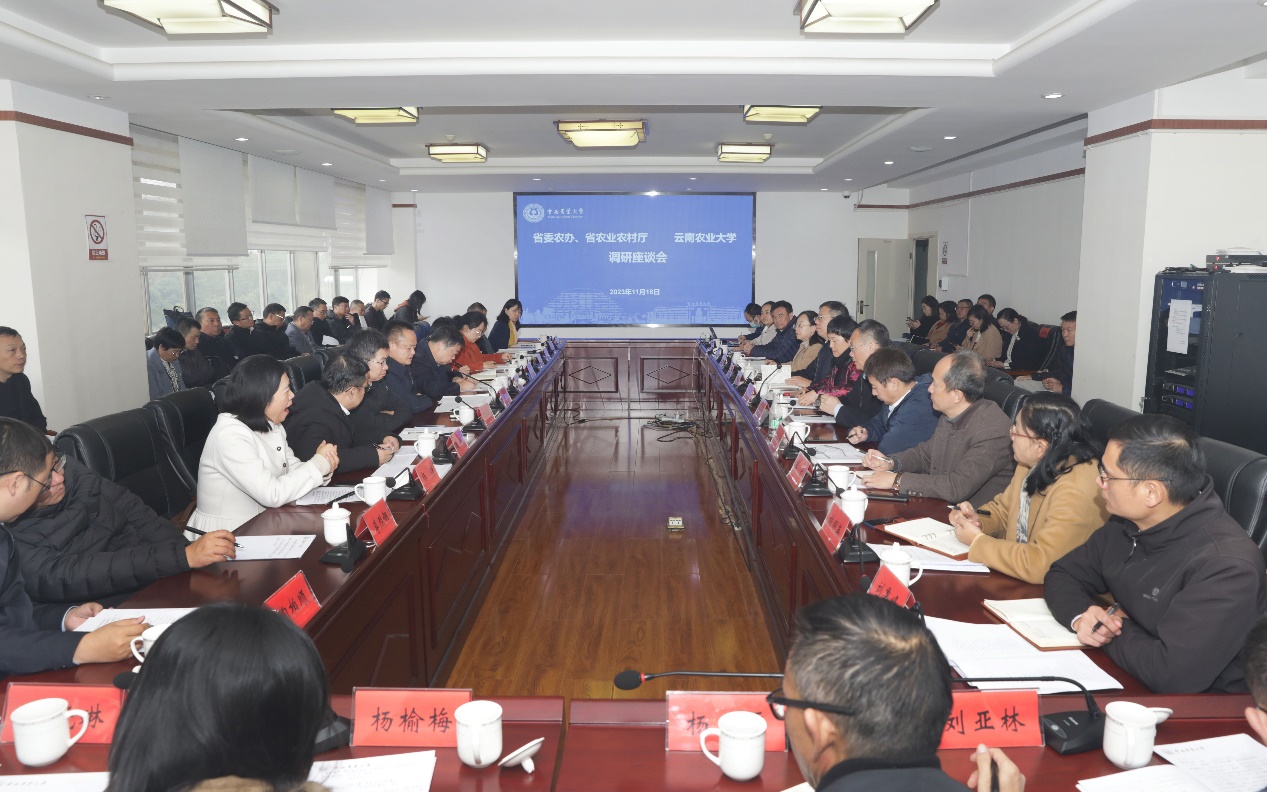 省农业农村厅党组成员、副厅长谭鸿明、王平华先后介绍了我省的三普工作、高标准农田建设、生态环境资源和物种资源利用、实现农业现代化以及辐射带动南亚东南亚国家共同实现农业现代化的总体情况、存在的短板,希望学校发挥人才、科技等资源优势,与省农业农村厅开展合作,共同推进相关工作。