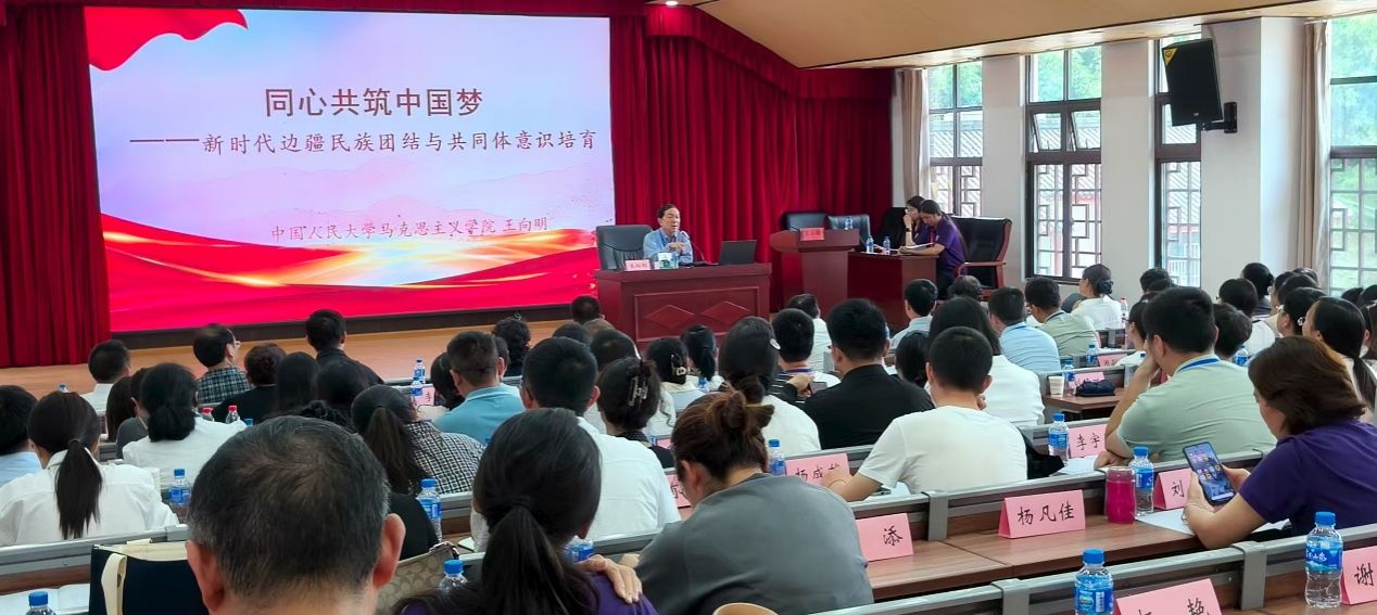 中国人民大学马克思主义学院教授王向明作题为《同心共筑中国梦——新时代边疆民族团结与共同体意识培育》的主旨报告。王老师从以习近平总书记的重要论述为指导强化思政课的政治引领、创新教学方法增强思政课的实践性、构建“大思政”格局形成育人合力等三方面,强调了云南省大中小学思政课都应以习近平总书记关于云南要“努力成为我国民族团结进步示范区”为目标指引,结合云南多民族聚居的特点,挖掘本土红色资源和民族团结进步典型事例,增强课程的感染力和说服力,将中华民族共同体意识深深植入学生的内心。